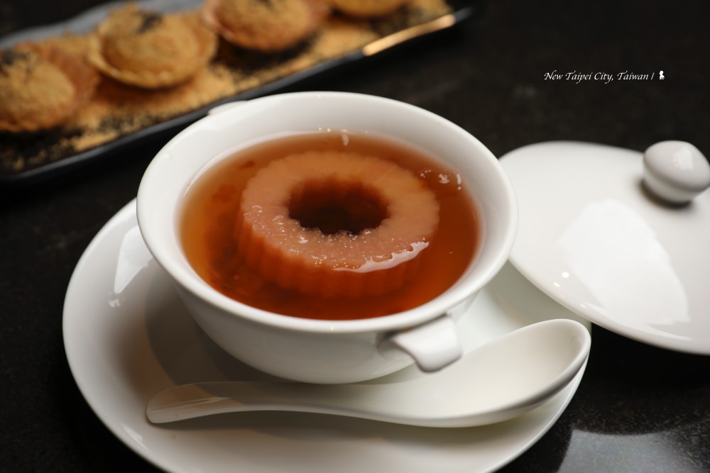 不得不說,這道貴氣高雅的甜品,很襯這間餐廳的氣質,作為一餐結尾相當合適。使用梨的清香甜與桂圓、紅棗的滋滋甜進行平衡,加了桃膠增加咀嚼口感