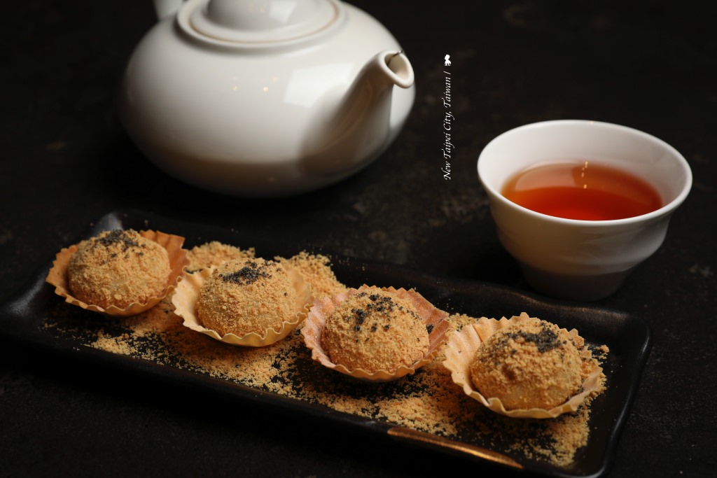 煮過的芝麻內餡湯圓再撒上花生粉,有趣是盛著的紙托竟是可食用的春捲皮,酥脆遇上軟綿是有趣的口感對話,再配上本次佐餐所選的東方美人茶,甚好!