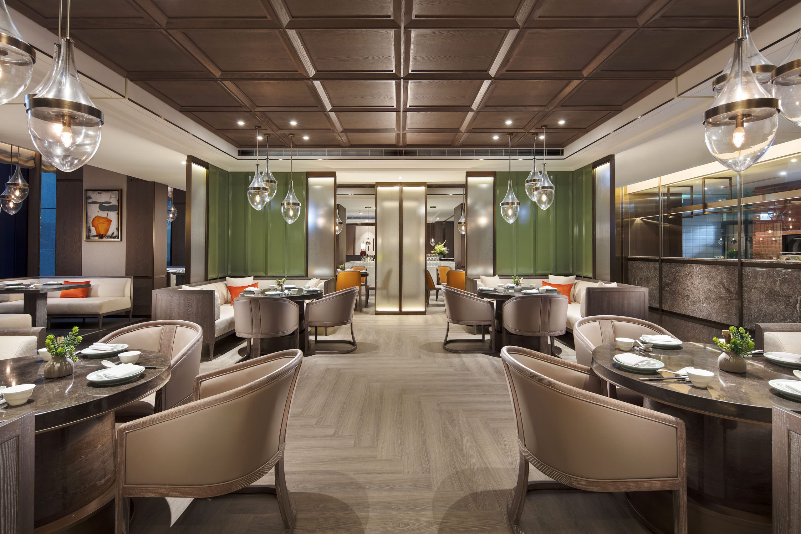 趁著前陣子 2 月入住,順道來這家原本在板橋就很具口碑的青雅中餐廳用餐。空間延續酒店整體的清爽風格,以木質調配上莫蘭迪綠的設計,又多了些雅緻中國風,像是間會在巴黎出現的高級中式餐廳,頗具品味與質感。