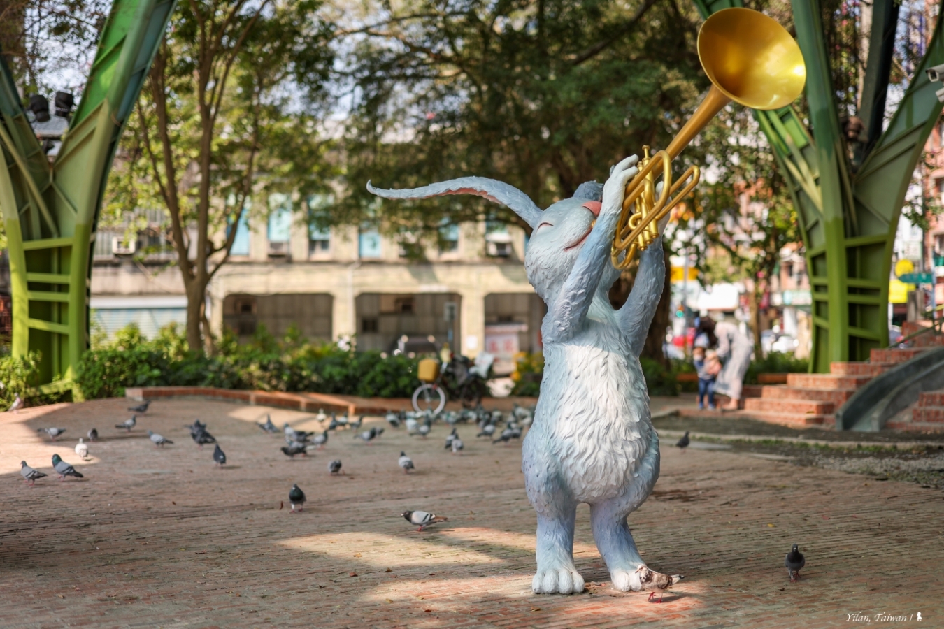⇑ 吹奏喇叭的毛毛兔像是帶領著鴿群(RF 50mm F1.2 L USM|光圈 1.4、快門 1/2500、ISO 100)