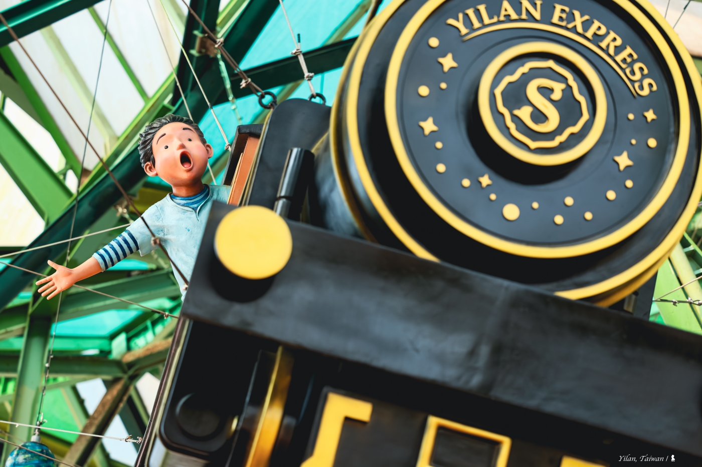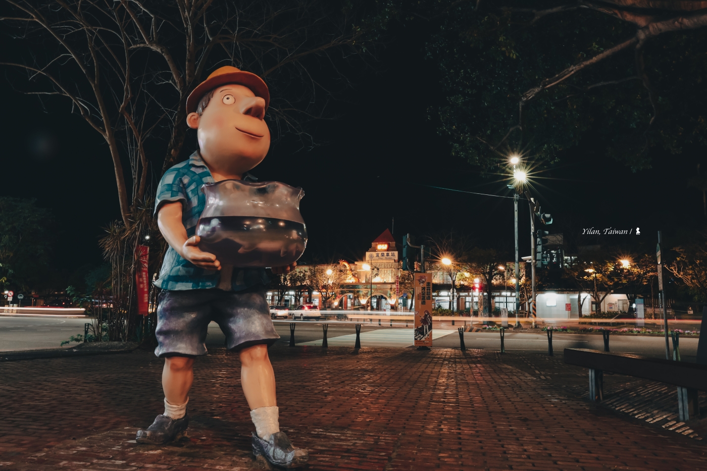 繼以幾米繪本為主題的淡海輕軌綠山線攝影案,4 年後再受委託,前往拍攝位於宜蘭火車站前的「幾米星空飛天小火車」官方用照片。取材自幾米繪本作品《星空》的「飛天小火車」,其實幾年前就在此升空過,一直以來是許多海內外遊客造訪宜蘭都會特別前來拍照的熱門景點。去年下半年因颱風等關係讓原本作品遭受損害而無法繼續飛天,後來也才有了今日的飛天小火車 2.0 版。在今年初登場的升級版飛天小火車,除了以俗稱玻璃鋼的 FRP 材質所構成,更為堅固耐用外還再增加幾米繪本中的幾個經典角色,讓整體意象更加豐富!包括《微笑的魚》裡抱著魚缸的大叔,《森林裡的祕密》毛毛兔吹奏喇叭歡送飛天小火車,還有候車區《地下鐵》的盲女也不分晴雨的在這陪著大家等車。重點是每天到了傍晚,一條夜間光帶彷彿讓飛天小火車頓時跑了起來!為了能夠完整拍攝,我帶著 Canon EOS R3 與 4 顆不同焦段的鏡頭,於早上、午後、傍晚至入夜等不同時段蹲點,期待能透過不同的鏡頭語言並搭配現場的光線變化,讓這組大型的戶外作品能夠更加鮮活。