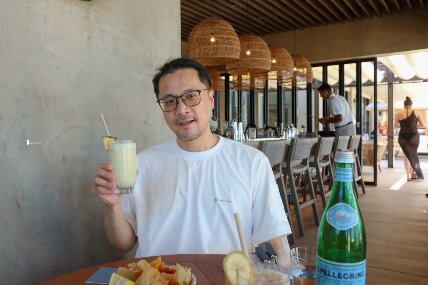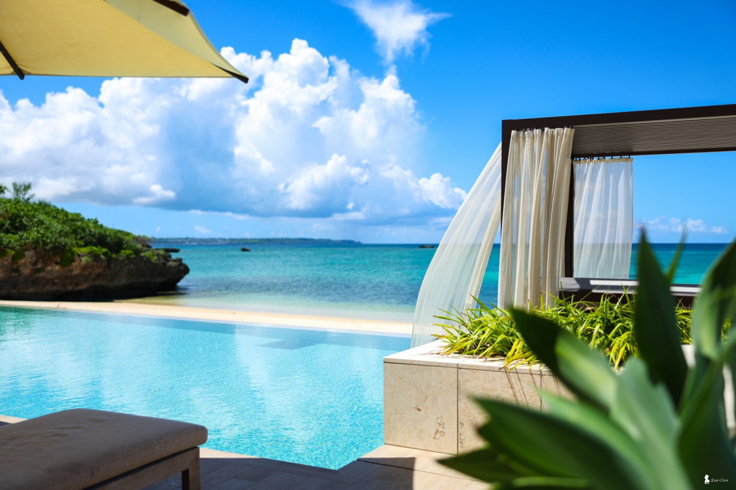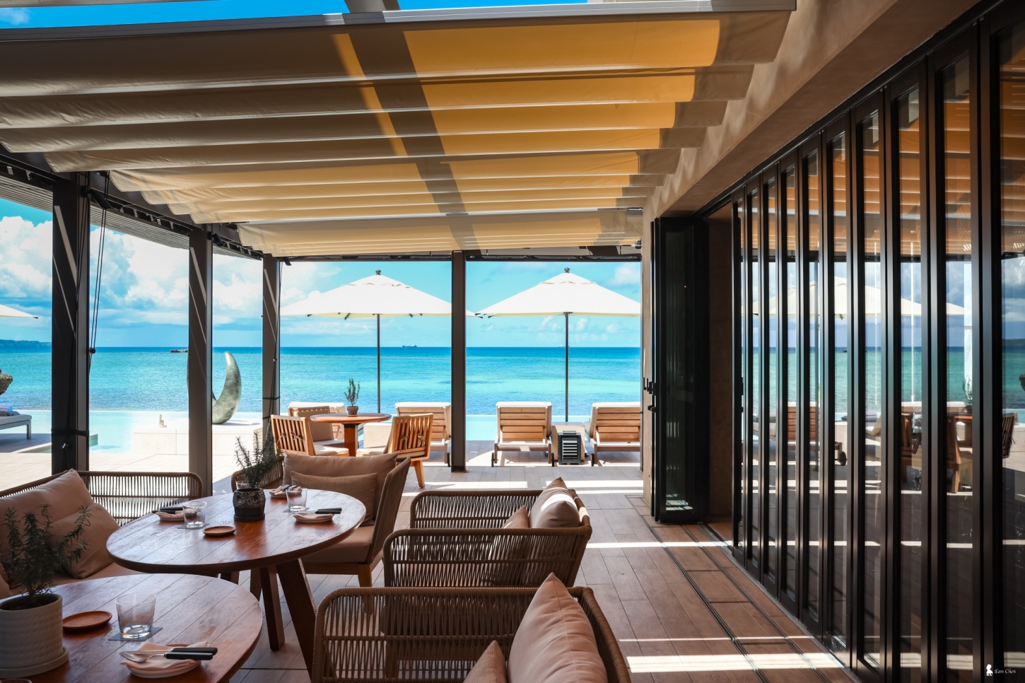 坐在這裡,一抬頭就是泳池與大海,時間自然被拉長,只剩下光影在緩慢流動。