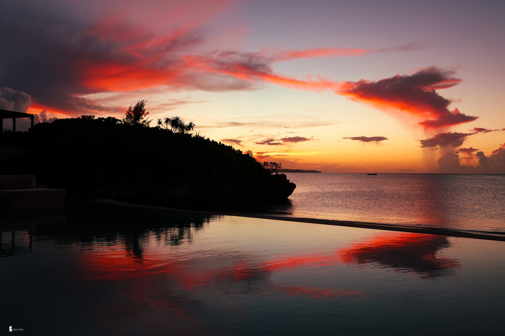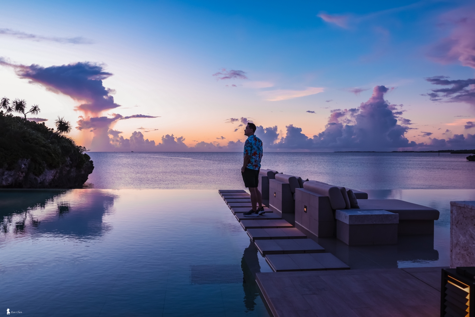 ⇑ 暮光降臨時的泳池最安靜,也最迷人,像島上的呼吸被輕輕放慢