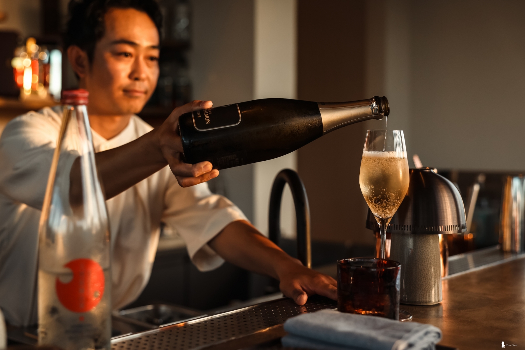 ⇑ 在日落色溫裡緩緩倒下的氣泡,是 MAAS 迷人的開場儀式