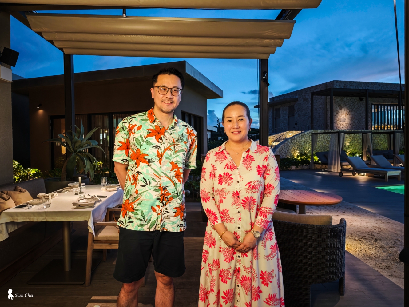 記得抵達飯店那天傍晚,我在泳池畔拍到了一場宛如奇幻電影般的天象:天空被橙紅渲染,而泳池像鏡子般映出雲朵圍成圈。就在那時,我遇見飯店總經理 Noriko Nakayama 女士。她熱情地向我展示手機裡的海龜照片,也談起保育工作的細節與挑戰。