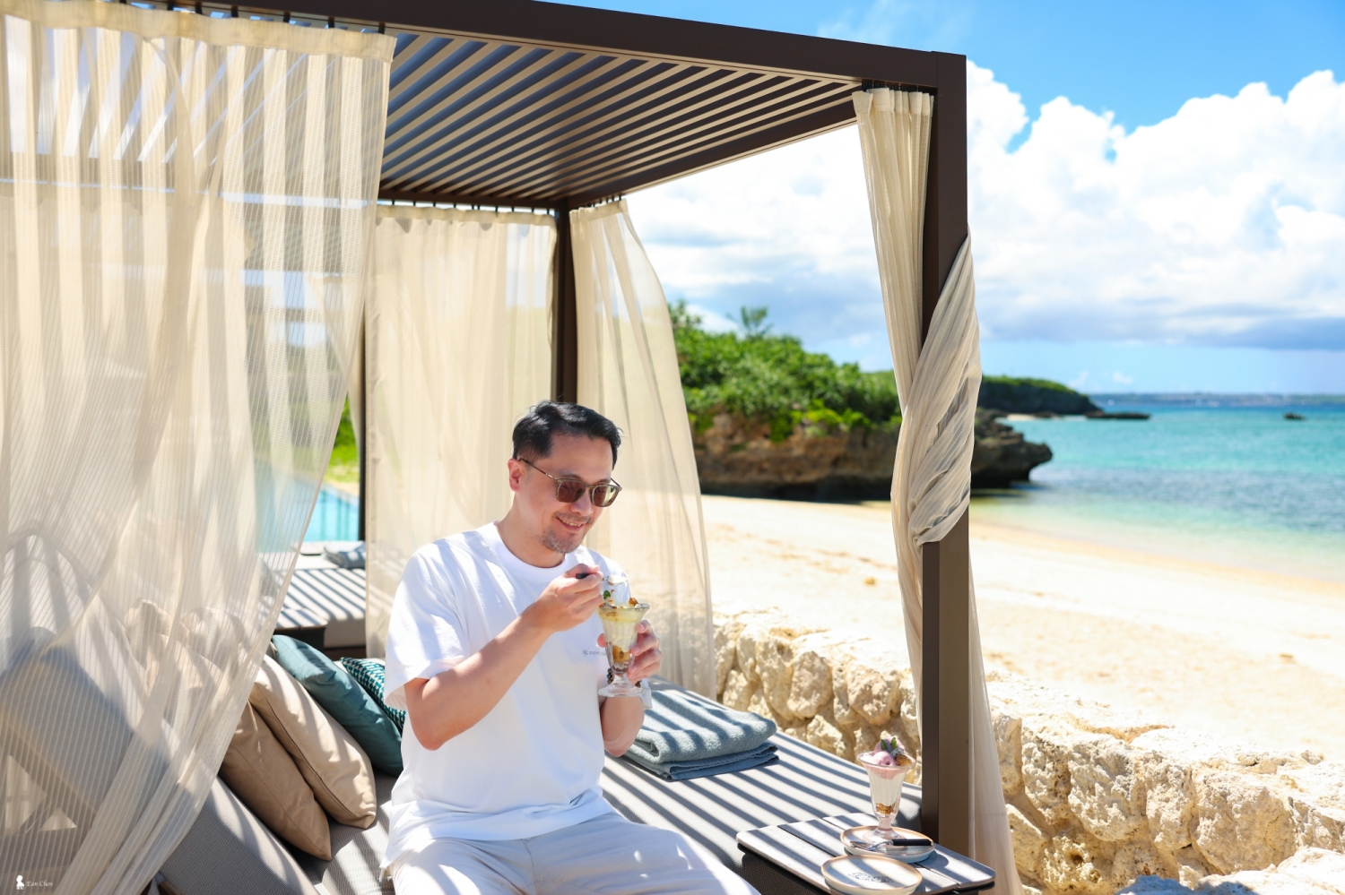 ⇑ 午後在海邊享用甜點,風輕、日暖,也讓人更貼近這座島嶼的節奏