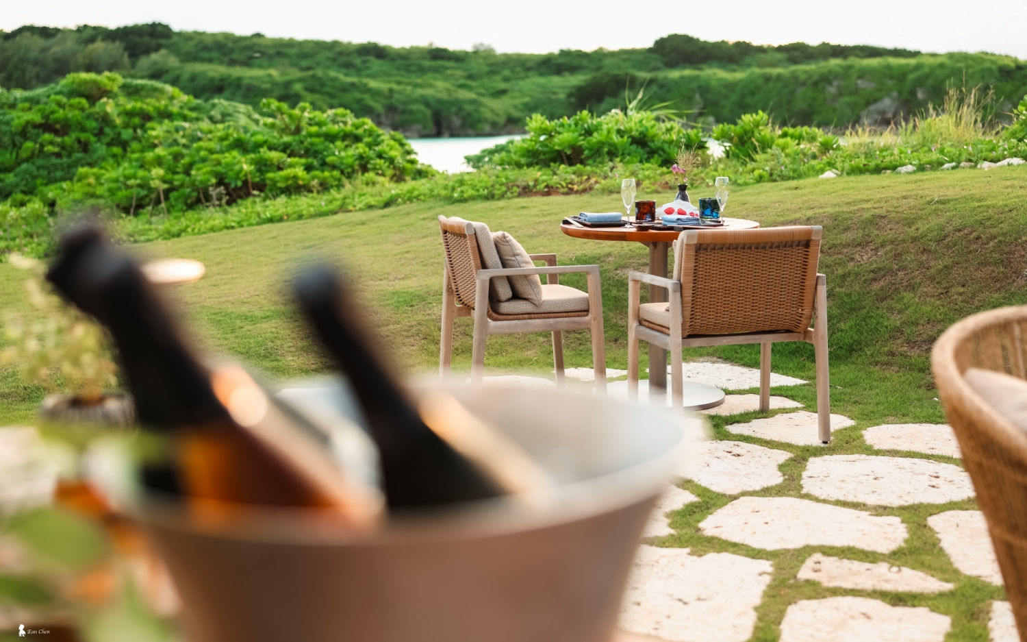 ⇑ 黃昏把 Nagi 戶外餐桌染上一層柔光,頓時成了夕陽的畫布