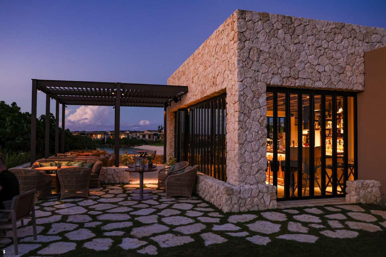 ⇑ 由石灰岩堆砌出的建築,在入夜後更顯溫度,是宮古島瑰麗最迷人的用餐場景之一
