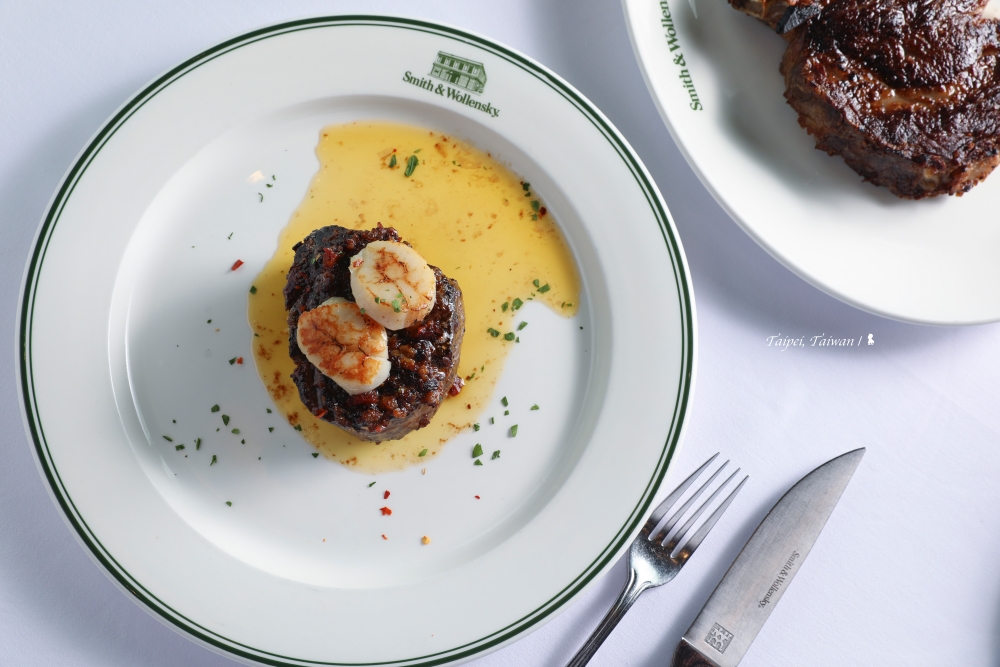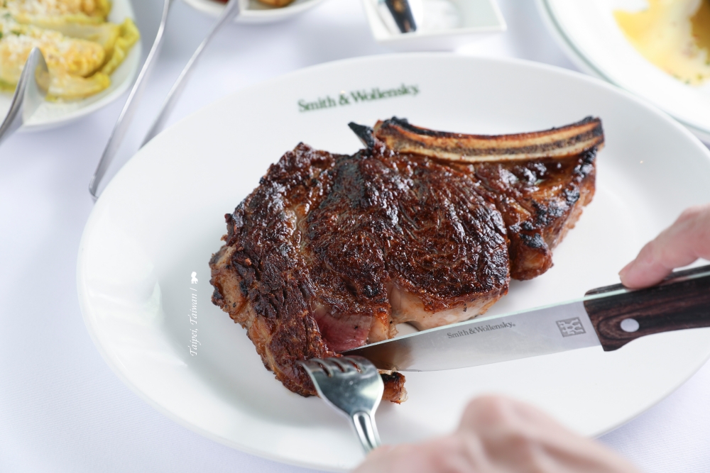 牛排應該怎麼吃?在過去,可能會說看你是想吃氣氛還是想吃飽!但來到超過四十年歷史的美國經典牛排館 Smith & Wollensky 不一樣,想吃乾式或濕式熟成?想選什麼部位?熟成天數也是學問!倒是熟度要五分或七分還在猶豫不決?服務人員直接建議三分熟是最佳選擇!至於氣氛跟吃飽,不用選,同時滿足。因是高踞於微風南山的 47 樓,餐廳視野極佳,巨大的台北 101 是奢華窗景,氣氛滿點!此外,因是大份量的美式餐廳,吃不完歡迎打包,幽默的提袋上就印著「吃太飽」,飽到天靈蓋的當下看到,還真只能捧腹大笑。在股神巴菲特與電影《穿著PRADA的惡魔》的總編輯米蘭達的名人光環加持下,2019 年元月在台灣展店,可說風風火火,引起一票饕客吹捧,如今兩年過去就算平日中午仍常一位難求,可見這家店端出來的牛肉,可不簡單。