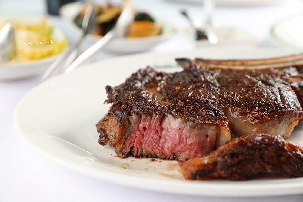 等不及的,我接著再試 24 oz 帶骨肋眼。服務人員分享,乾式熟成牛肉本身會多帶有起司與堅果的味道,不需要額外沾醬,吃原味即可,或也可沾海鹽來提味,熟度一樣是建議三分。ㄧ嚐,口感跟我之前吃的牛排果然相當不同,帶些焦糖感的處理又更添肉香,實在驚艷!接著,我一邊嗑,一邊聽著牛排課。餐廳人員用牛排刀一劃,建議我先吃肋眼上蓋,也就是俗稱的老饕肉,那是肋眼裡最嫩的部位,同時因油脂程度較高,所以要趁熱吃。餐廳人員指著一塊油花部位,她開玩笑說那塊油角常常害他們被客訴,表示因為台灣牛排都是精修過,端上桌時,客人多是不會看到油角,之所以他們要保留,是因為整塊牛排連骨帶油一起下去烤,風味是流動的,會更加完整,所以 S&W 一直以來才會堅持要保留住該部位。另外,有個食用的小撇步是,等老饕肉吃完後,可請服務人員再把骨邊肉與油角再送到廚房烤一次,他們會協助把骨邊肉削切下來,這時油角可以搭配肉一塊吃,又會是不同風味。這一餐,我真的是獲益良多!