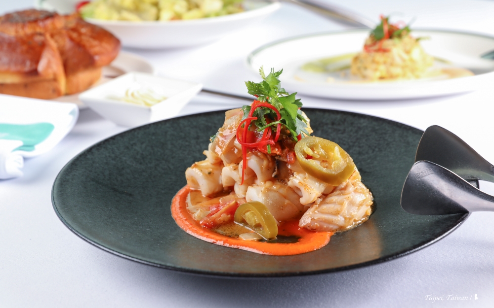 ⇑ 香辣中卷哈薩里醬,是針對台灣市場設計的季節性前菜