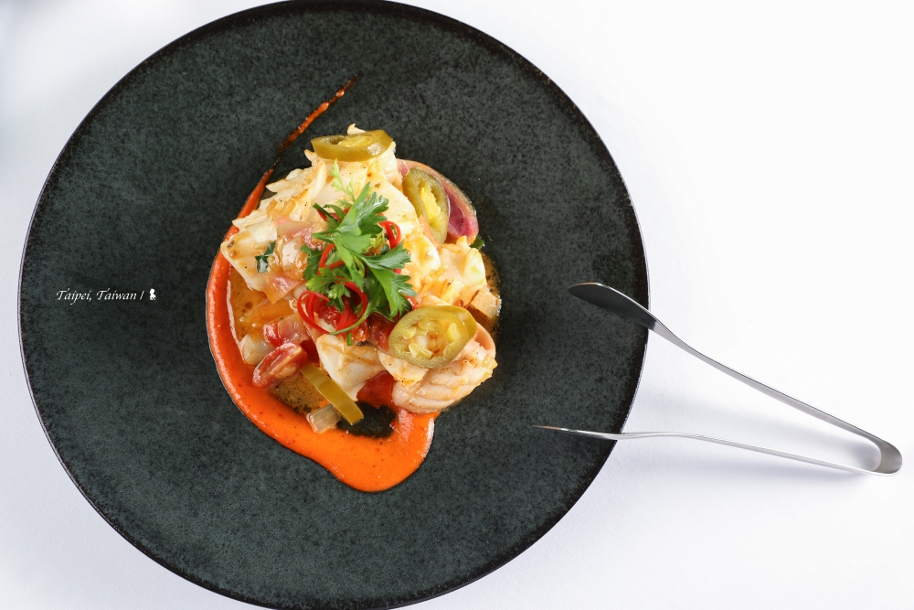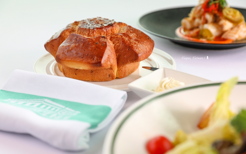 附的餐前麵包也不簡單。手工烘烤的法式奶油麵包布里歐許,蓬鬆而溫熱,附的抹醬是手工奶油,原本我打算要把胃留給其他美食而不打算動它,錯了,只要一吃就會停不下來,口感真好!