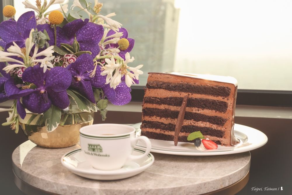 從前當我聽說「甜點是另外一個胃」,總覺得這樣的說法是在胡扯,直到我吃了 S&W 招牌的「巨大巧克力蛋糕」。這蛋糕有十層,提供牛排刀來切也是合理。我很喜歡蛋糕的濕潤口感,使用的是苦甜巧克力,因此不感甜膩,更是意外與驚喜,此外又再加了一點貝禮詩奶酒來增添香氣。品嚐這蛋糕,咖啡是絕配,咖啡本身很不錯高出我預期,此外就算點的是冰美式,仔細一看,裡頭冰塊用的是咖啡冰磚,時間一久味道也不會淡掉,相當用心。如之前所提到,美國人才不會管台灣人的胃比較小,就連這款蛋糕一樣都是要維持巨大的美國份量,吃不完是正常,餐廳很貼心的量身定做了蛋糕的外帶盒,就是為了方便客人打包,稍早一個拿到的提袋是印「吃太飽」,蛋糕這袋則是印上「趕時間」,我又笑了,心滿意足的,這就是美食的魔力吧。