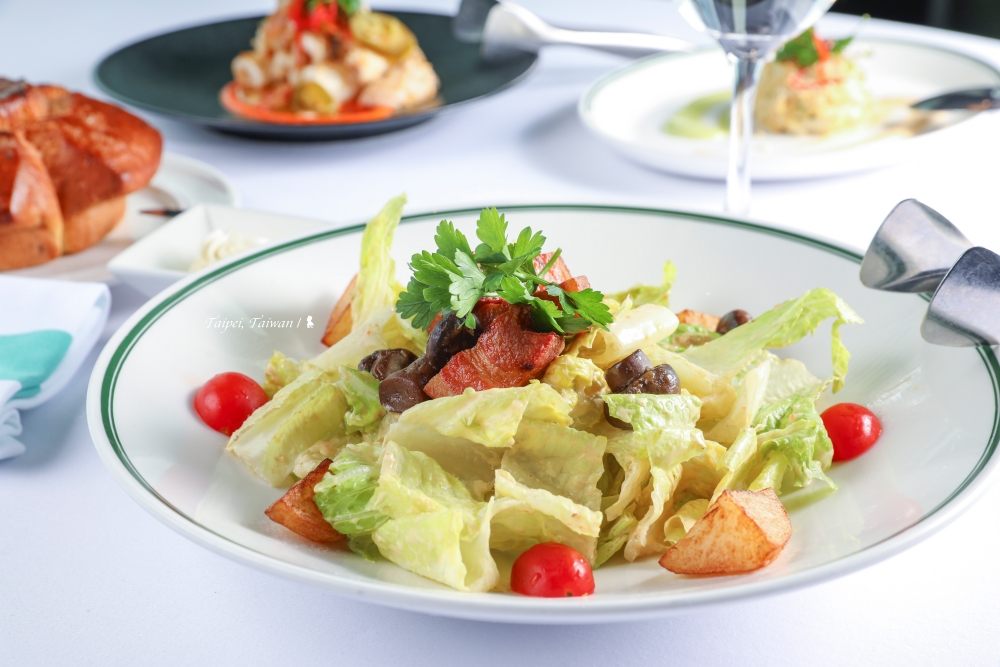 因是第一次來,其他兩道前菜我挑的都是經典。「蟹肉餅干邑芥末醬」,取名蟹肉餅其實是使用麵包蟹的蟹肉塔,若跟我一樣愛吃螃蟹,這道是懶人福音,處理好的滿滿蟹肉,嚐起來太過癮!另一道「華倫斯基沙拉」,取自餐廳名稱的第二位人名 WOLLENSKY,你一定會想,這肯定是創辦人或主廚的大名吧?哪知道很幽默的是,餐廳的那兩個人名,就只是從一本紐約電話簿裡隨機挑選出,不過,這道沙拉確實是他們的經典,沒換過食譜,有點像是凱撒沙拉的變化版,新鮮的蘿蔓上加了不膩口的厚切培根與炒蘑菇,讓我更訝異的是馬鈴薯塊的脆感,先炸過再炒,口感相當特別。醬汁也是重點,使用法式油醋醬加法式地戎芥末醬,再淋上些許檸檬汁,偏酸的口味,果然開胃!