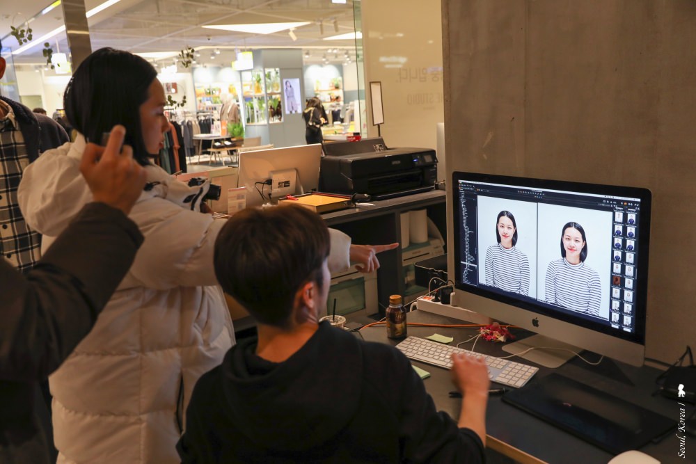一直有耳聞,首爾拍證件照很厲害,且聽說拍完馬上在電腦上咻咻咻修片,馬上就能拿到照片,若在台灣找相館拍,通常都得等上幾天才能拿到照片,因此吸引不少遊客順道在首爾拍大頭照。說來好笑,自己雖是攝影師,蠻常為不同客戶拍攝肖像照與形象照,但自己近年的證件照常因趕著要辦簽證或護照,都是緊急花 150 元跑到路邊證件照拍攝機器草草解決,所以當得知行程中安排去拍證件照,我相當興奮,除了終於能有像樣的專業證件照外,也順便親身去體驗到底是不是如傳說中的神奇!