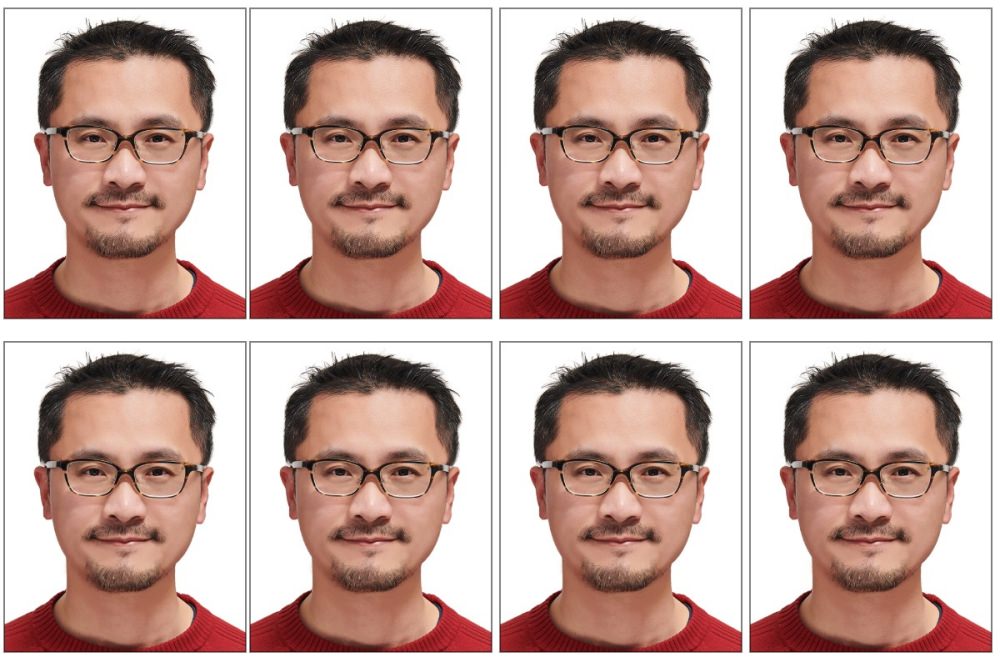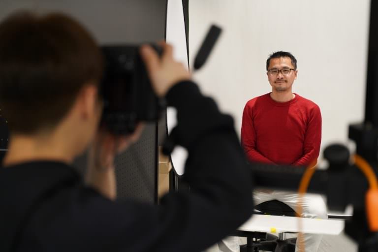 現場的棚燈與反光板都是固定架好,拍攝過程蠻快,每一位大概 3-4 分鐘搞定,攝影師會稍微指導一下姿勢與角度,會拍攝 6-8 張照片,並從裡頭挑出一張來進行修片,每個人都有固定偏好的角度與表情,不過攝影師也會從其專業角度給予挑片建議。
