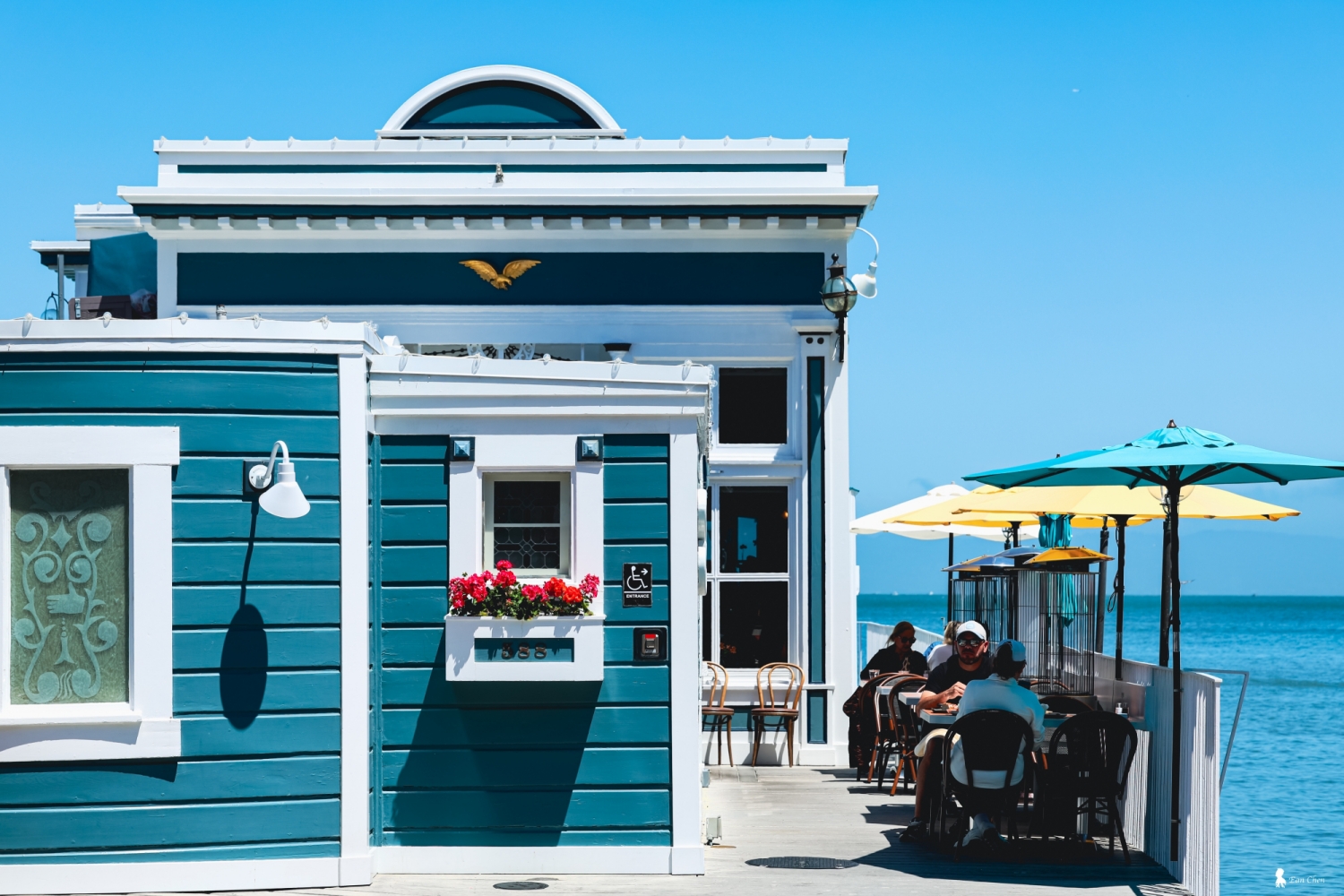 ⇑ Sausalito 的海邊餐廳,藍白色調與加州天空完美呼應