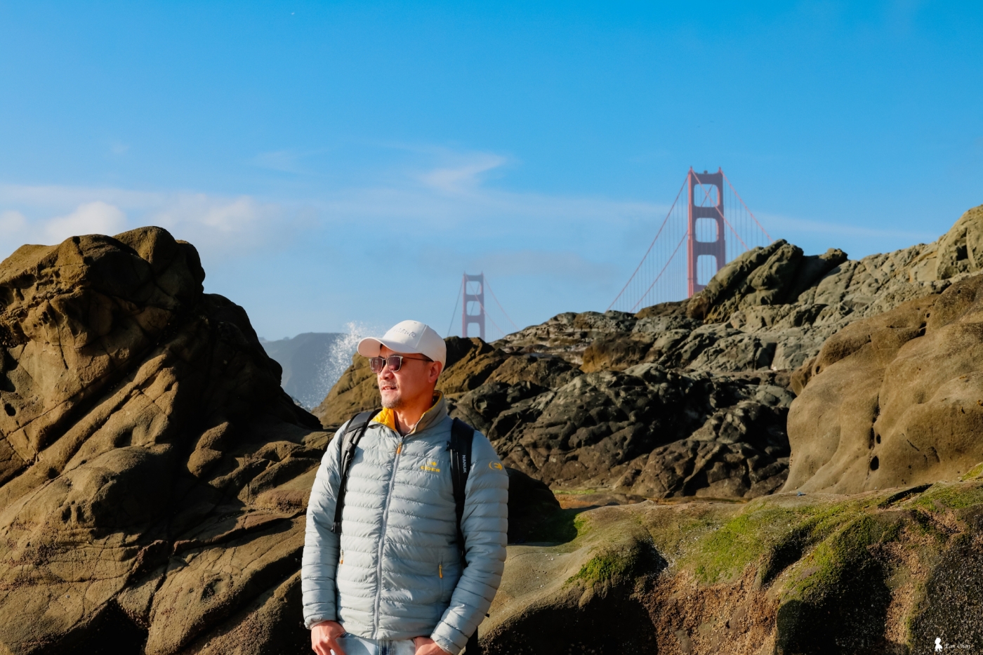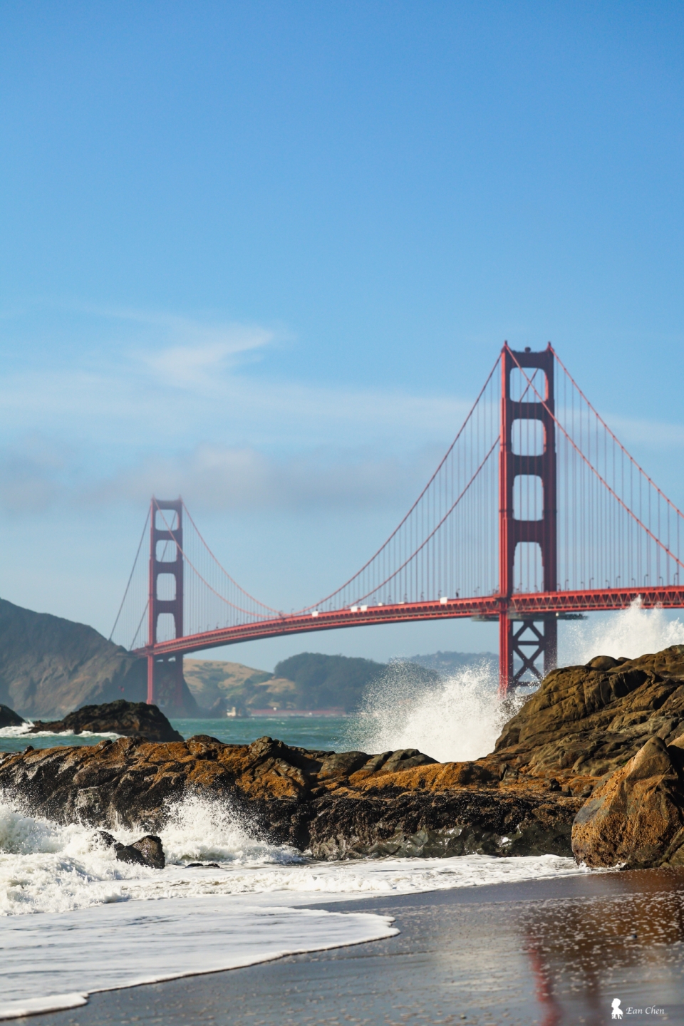 ⇑ 在 Baker Beach,與金門大橋同框不只是合影,而是用獨特的海岸視角,把浪花與紅橋一起收入鏡頭裡