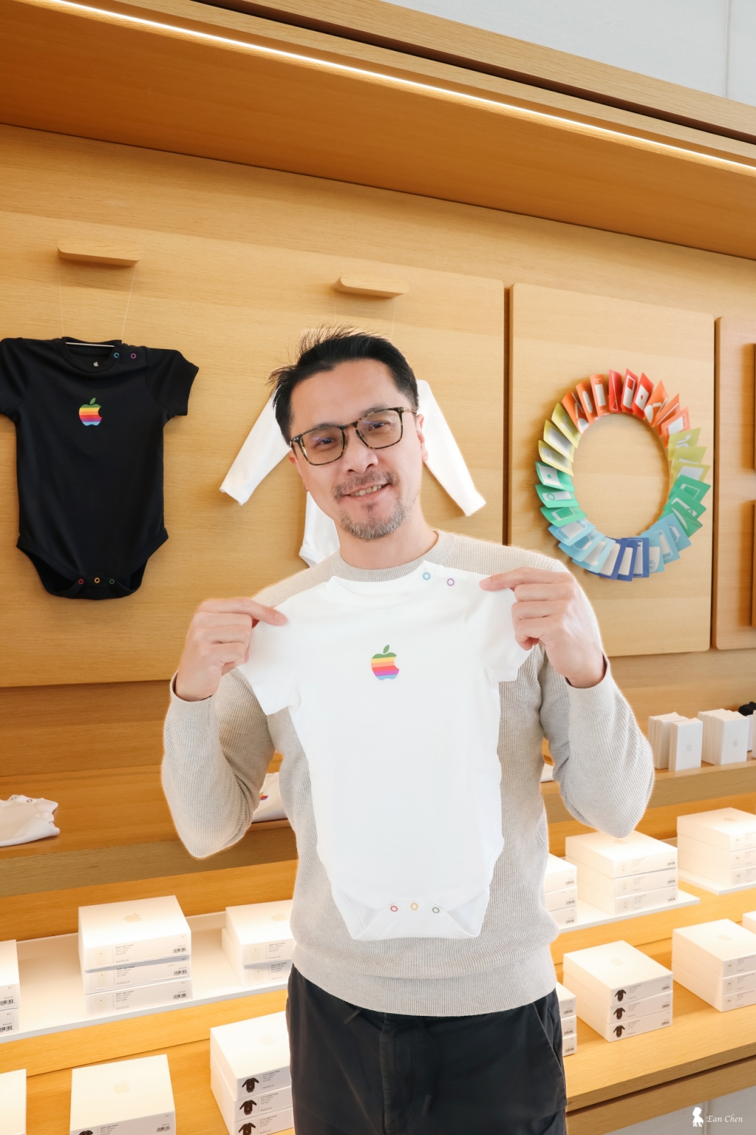 ⇑ 挑了一件總部限定的彩色 Apple logo 包屁衣,準備送給外甥孫