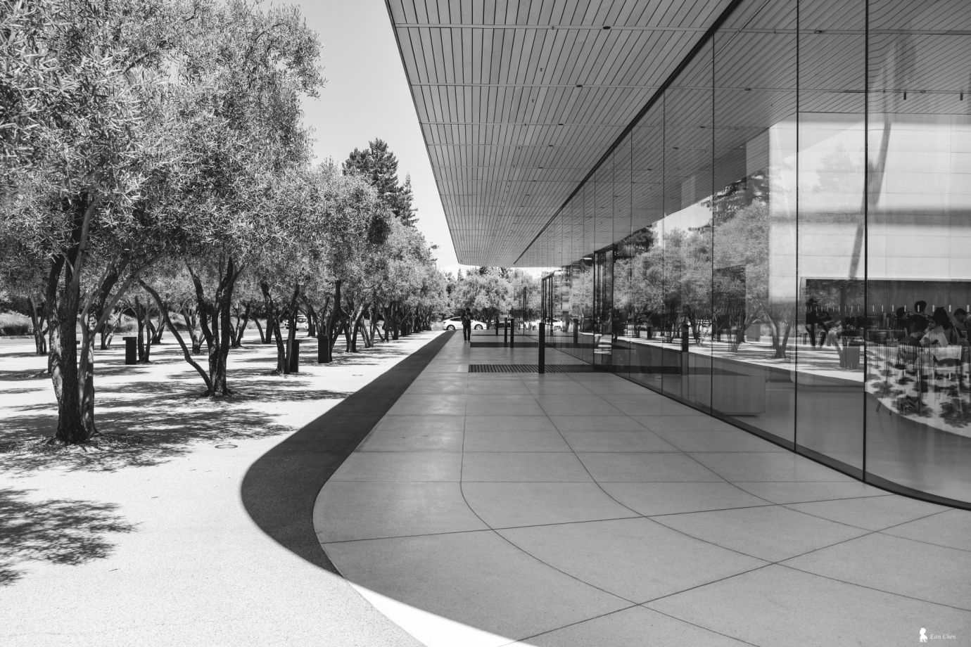⇑ Apple Park Visitor Center 的極簡之美,連光影都像精心設計的一部分