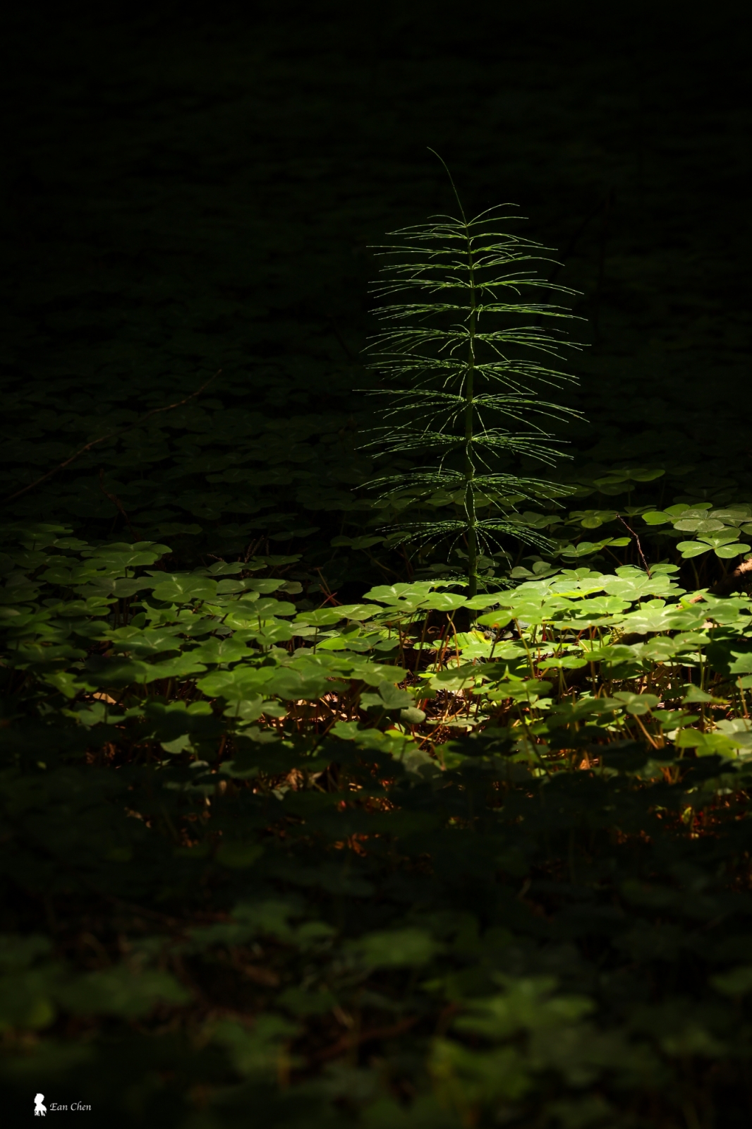 ⇑ 陽光如聚光燈打在纖細枝葉上,像極了跨年夜的台北101,燃放屬於紅木森林的迷你煙火