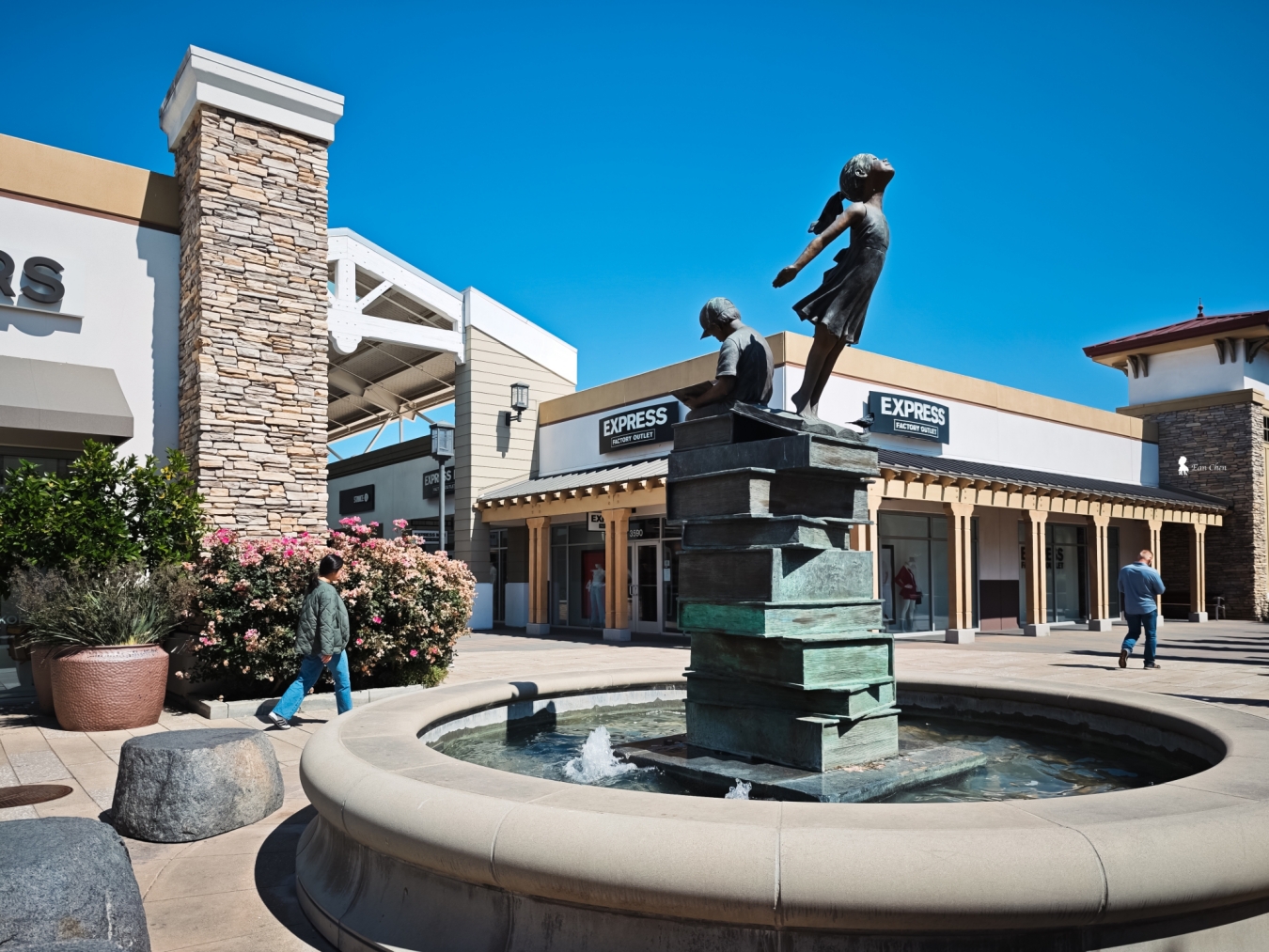 ⇑ Outlet 中的藝術點綴:噴泉與雕像,讓購物也像一場悠閒散步
