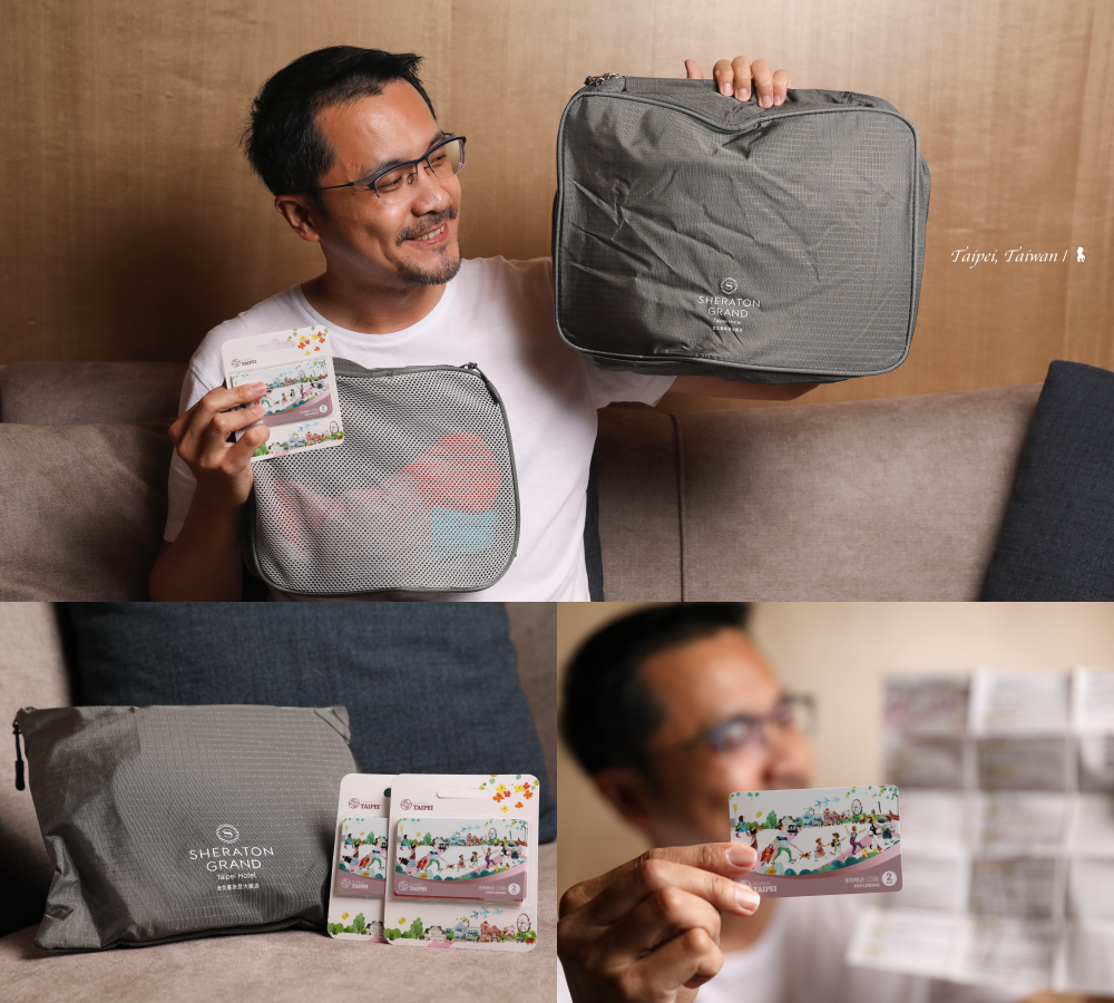 等吃飽休息夠,就準備好好出外探索台北!這回體驗的「喜遊北北基暢玩雙北住房專案」,尤其適合想要把握時間力衝許多大台北包括基隆景點的旅人。所提供的兩天期「北北基暢遊卡」,除了可當悠遊卡,還可玩遍包括美麗華摩天輪、朱銘美術館、金瓜石黃金博物館、貓空纜車雙程票、動物園、袖珍博物館、兒童新樂園、海洋科技博物館以及淡水漁人碼頭船票等 20 個景點,注意,不是擇一,是全部都能玩一次!更尊榮的是還可享搭乘 BMW 大 7 系列或 Benz S350,喜來登 – 捷運動物園站或劍潭站來回接駁服務一次。此外,還有個彩蛋是該專案房客入住期間於飯店粉專打卡,可額外獲得喜來登旅行收納袋兩件組,相當實用。