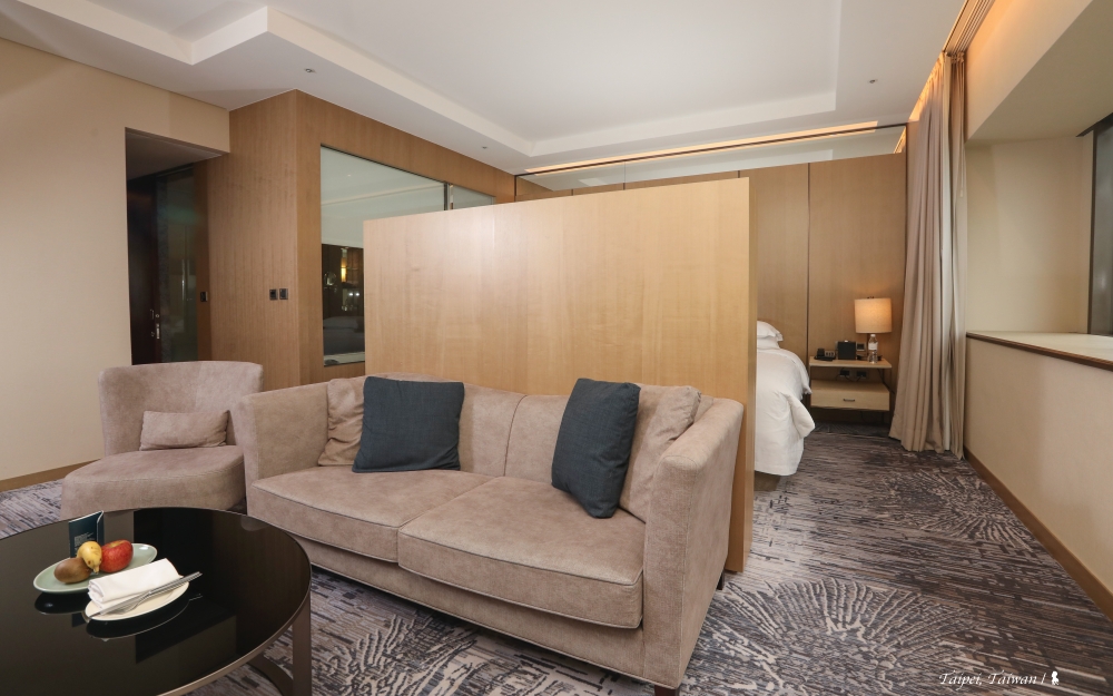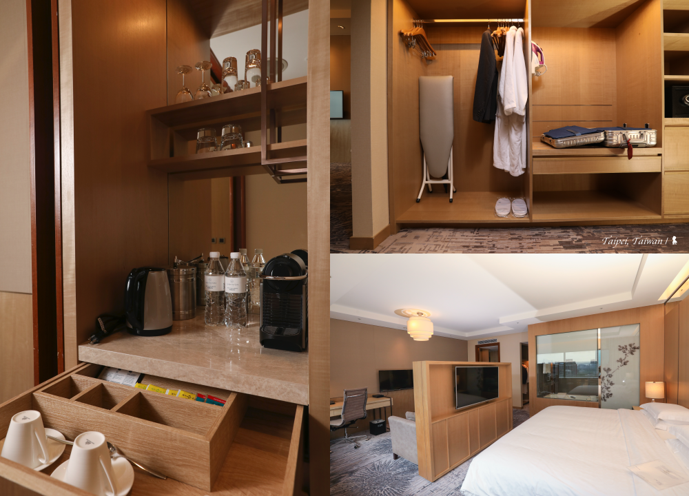 住過矗立海角、遺世而優雅的關島喜來登,再次與喜來登續緣,是從房間窗戶就能近看台北車站、遠觀總統府的台北喜來登。首次入住,直接攻頂、住在飯店最高的 17 樓,屬於行政樓層,15 坪大的行政主管客房,以淺木色調搭配簡約並帶很輕的東方寫意風格,中間的木頭電視櫃區隔起居與床空間,營造小套房的感覺。 房間風格蠻對我的味,喜來登的特色睡眠之床確實舒適,Nespresso膠囊咖啡機與 50 吋液晶平面電視都是不讓人意外的高級客房標配,真正讓我眼睛一亮、入住期間最吸引我目光的,是無可取代的台灣政治核心蛋黃區窗景,我喜歡窗戶的大面積,不只提供很棒的採光,深度很夠的窗台還能讓我躺在上頭,悠閒臥看台北車站旁的紅色燈河,那是週五晚上的塞車風景。