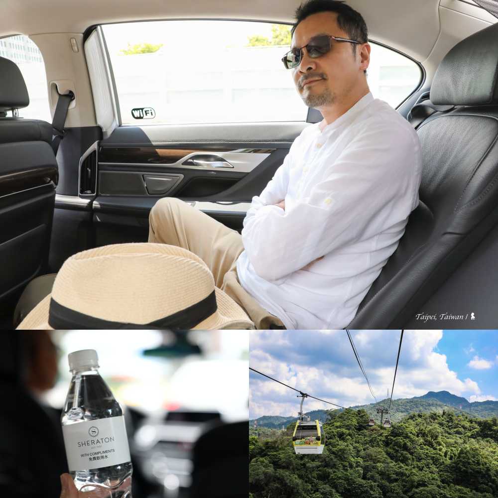 因我只有半天時間,研究了一下適用景點,最後決定來趟久違的貓空之旅。預約接駁的時間一到,安排的 BMW 大7 轎車已在飯店門口等候,必須稱讚是精緻的飯店服務延伸到轎車上,房客會拿到一張小卡,上頭詳細寫著車號、司機電話以及回程接駁時間,令人放心,另外還提供一瓶喜來登的瓶裝水,穿西裝的司機先生也是親切有禮,相當舒適到位,至於轎車,那就更不用說了。