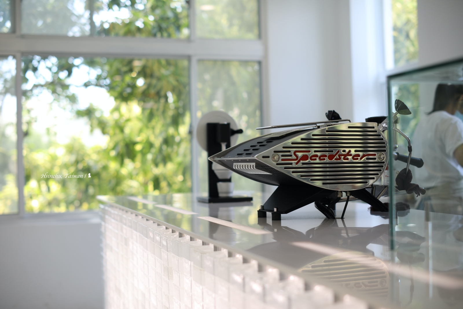 咖啡館位於很美的新竹公園裡,在非常有型的春池玻璃 3F,1F 有玻璃吹製工作室,可以自己 DIY。走到三樓,眼前的 80% 白、20% 綠的視覺舒心比例,讓眼睛都活了起來。負責空間設計的是「彡苗空間實驗」,延續春池以回收玻璃進行循環經濟為主軸的概念,其將回收碎玻璃製成了磨石子地面,而拱形的天花版,則是呈現玻璃窯爐的意象。而一進門就被抓住眼球,讓視感溫度瞬間降 5 度、彷彿冰磚的咖啡吧檯,則是以保溫磚堆疊而成,很具特色。當然,使用的食器,也是由春池回收玻璃製作而成,賞心悅目。坐在窗邊歇歇腿,欣賞公園的綠,舒服極了。