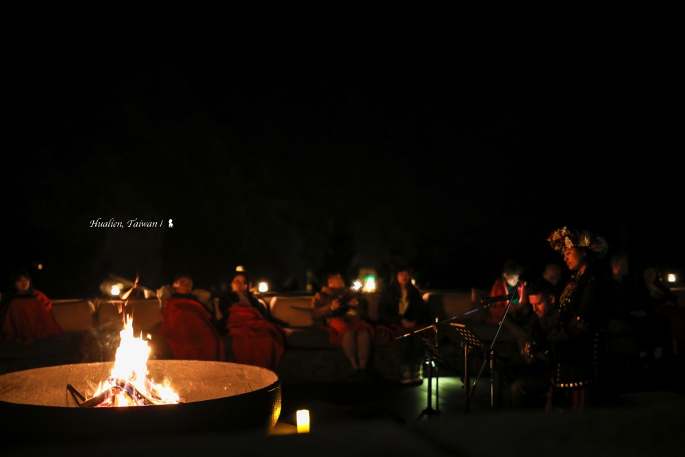週一至週五的夜間,頂樓火盆區會舉行原住民音樂會,週末則是原住民舞蹈。我是週間前來,正在交誼廳用餐到一半,放下刀叉被吸引走了出去。當晚是排灣族女歌手 Nina 與洋夫婿吉他手 John 的婦唱夫隨,我很喜歡這場演出,不管是表演者或現場氛圍,盡可能的純淨與原始,但又不失質感,山谷夜涼,提供了毯子讓大夥蓋著,圍繞啪啪柴火欣賞純淨又具能量的嗓音,更貼心是一旁還準備柴燒薑茶,甜暖好喝。再晚些,面向峽谷的露天泳池旁上演星光電影院,吸引許多觀眾前來。但我選擇換上泳褲,浸泡在泳池旁的三池 Jacuzzi ,雖非溫泉,但爽度完全不減。太魯閣晶英,讓我夜裡覺得好忙,卻又好放鬆…