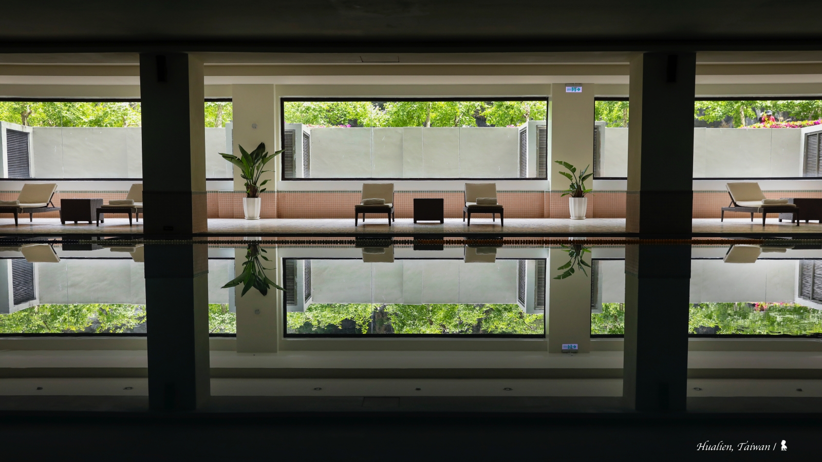 ⇑ 鏡面般的景緻,沒想到太魯閣晶英的室內泳池這麼美!