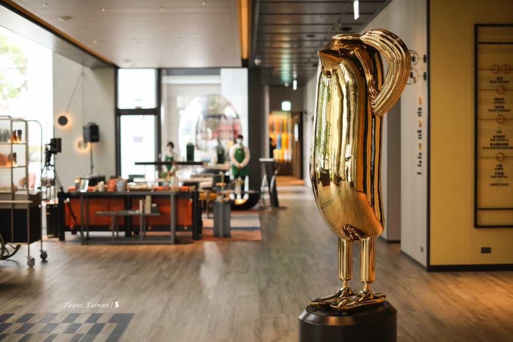 ⇑ 台北時代寓所大廳裡的藝術品,來自西班牙設計師 Jaime Hayon 創作的「希旺」(Hopebird),模樣逗趣、向往來旅客行舉手禮