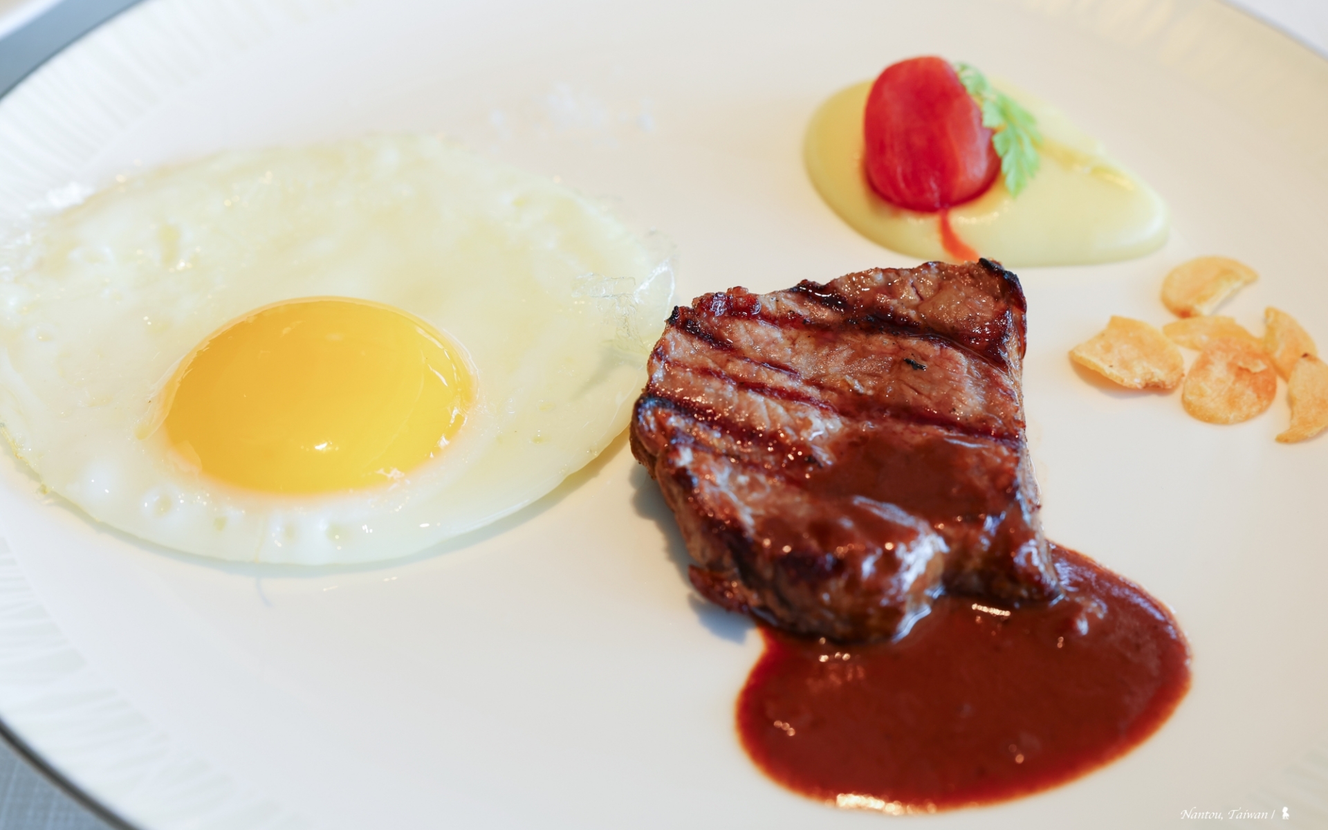 ⇑ 主菜「美國肋眼牛排和雞蛋」,推薦可試試
