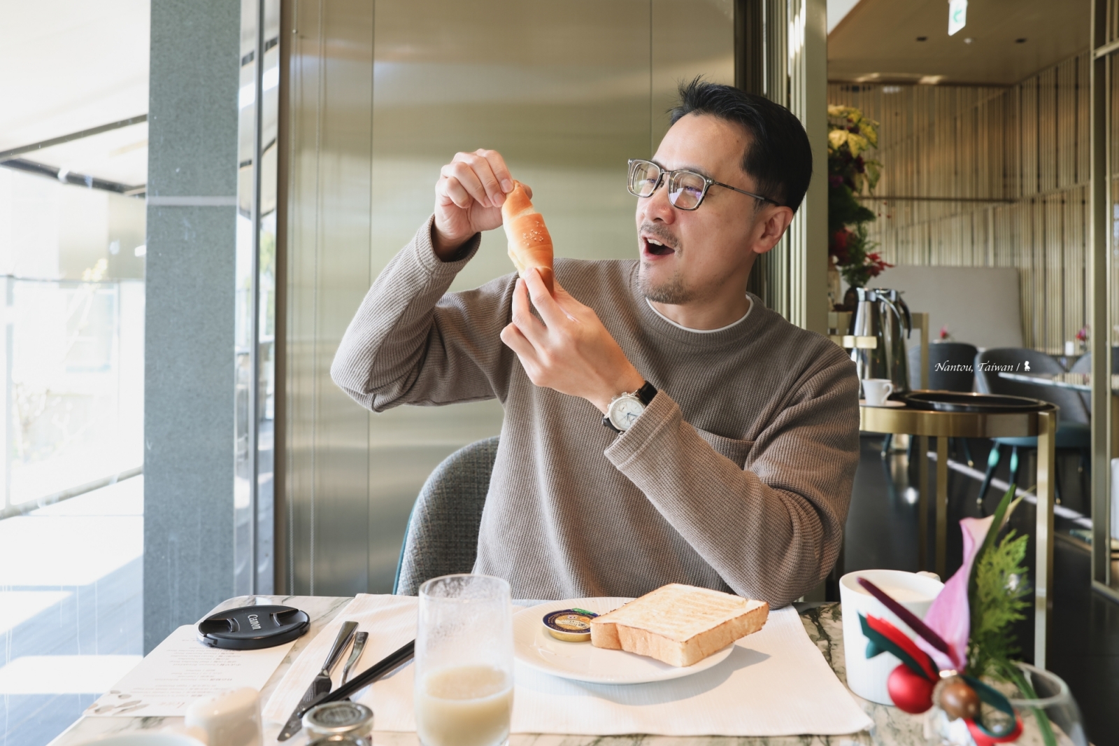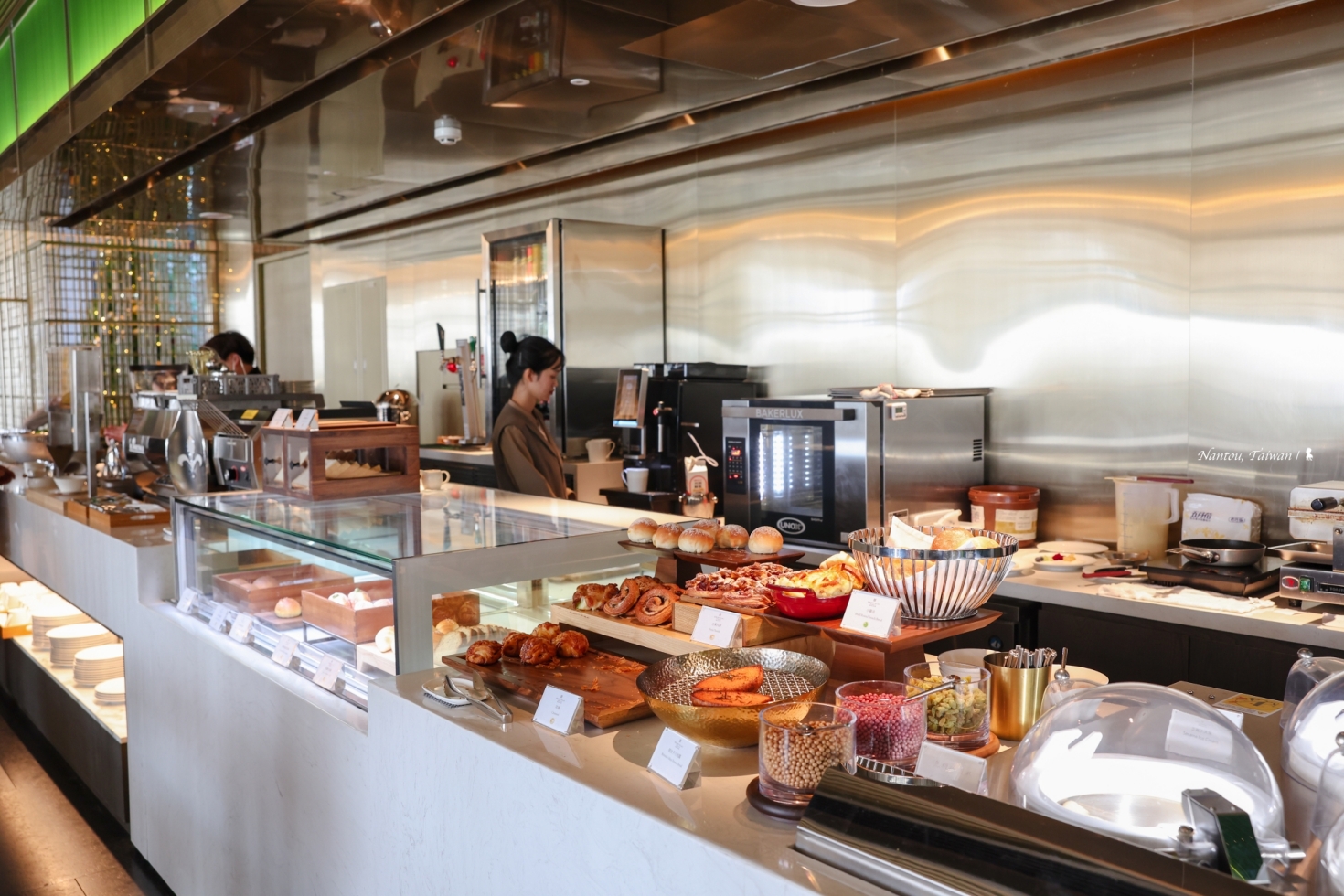 還有總是被我加權計分的稀飯區,配菜像是肉鬆、豆腐乳也都優,另外還有梅子口感也佳,稀飯也煮得好;麵包區更是超乎期待,試了可頌、鹽奶油麵包捲與生吐司,水準之高令人驚艷。其中可頌更是目前在台灣飯店吃過數一數二的,可請服務人員協助加熱,口感更佳。