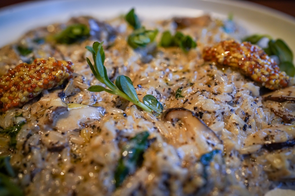 延續用料理訴說淡水故事,這回的食物設計功力可說再創新高度,一道「豬母奶黑松露燉飯」的美味更是讓我直豎起大拇指!他們所使用被歐洲譽為超級野菜的豬母奶,來自一位疼惜土地的淡水婆婆用愛灌溉,主廚加入法國黑松露醬,再巧妙以芥末籽醬提味,融合成濃郁又清新的夏日好滋味!越在地越國際,他們的新推出菜單日前馬上就被日本超人氣雜誌《BRUTUS》用一整頁篇幅做介紹(註),不僅是淡水之光、更成為紅到東瀛的台灣新食藝代表!