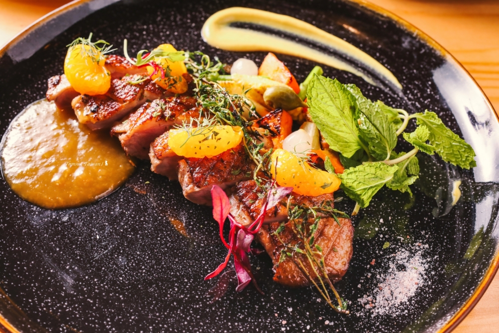 另外,我自己推薦兩道主菜,其中「鬥牛士五花牛肝菌燉飯」雖是使用台灣五花肉,但用的是義大利烹調方式燉到軟爛,吃起來有別於台式爌肉,這道有著酸、鮮、甜的豐富層次口味,蠻特別!此外,「爐烤橙酒漬鴨胸」鴨肉處理的相當不錯外,還帶有酸甜清爽感,很適合在夏日品嚐。