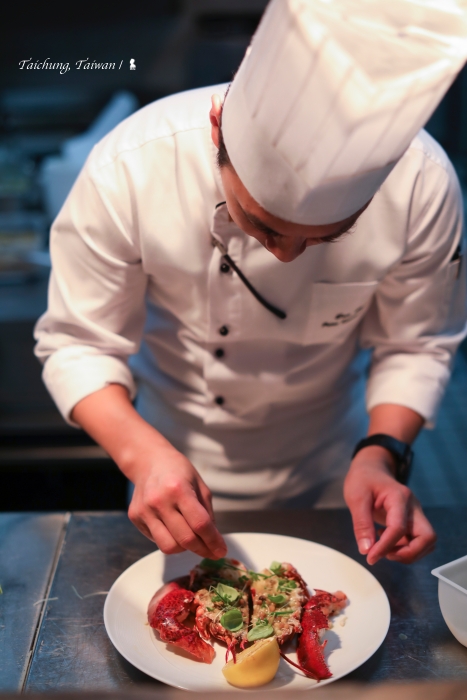 會特別使用來自加拿大的新鮮龍蝦,是加拿大緯度較高,因水域較冷,讓那的龍蝦少運動而擁有較軟嫩的肉質。為讓客人吃到肉質本身的鮮甜,不過度料理,使用義大利式香草調味,再將珍珠米放在龍蝦頭部吸附湯汁,是義大利麵的概念。