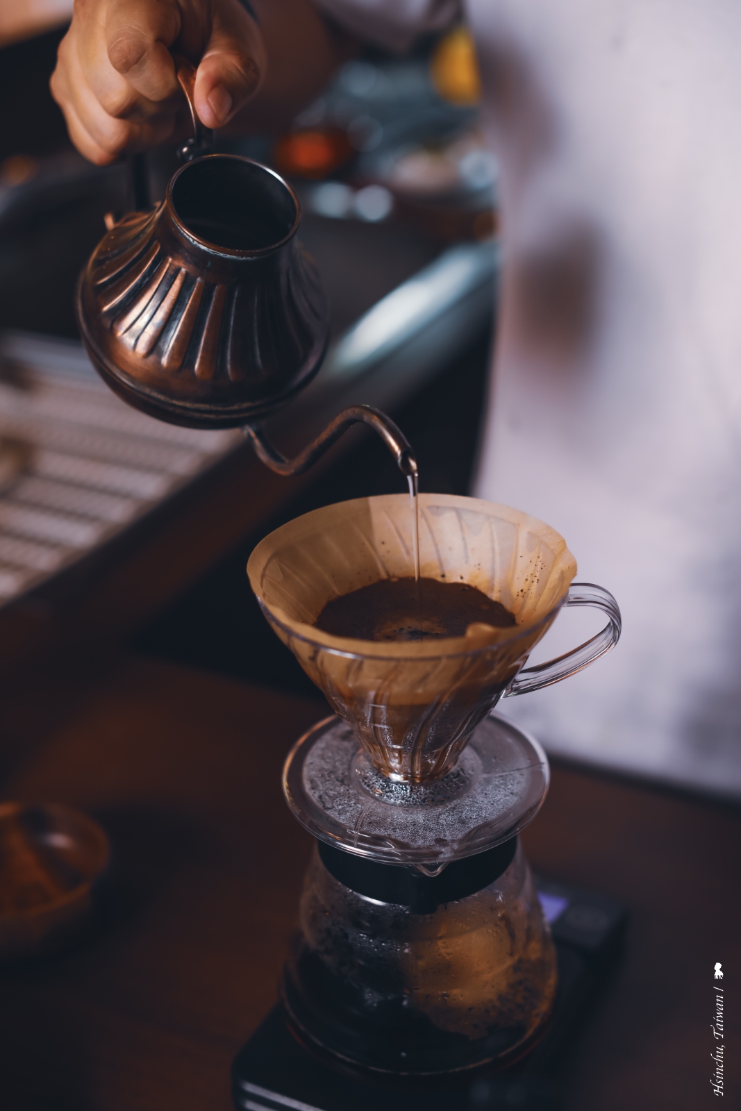 手沖咖啡桌邊服務,早餐吃梅乾菜吐司