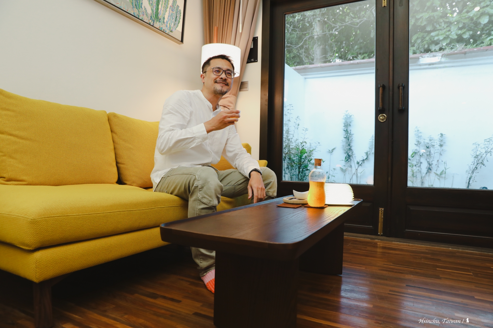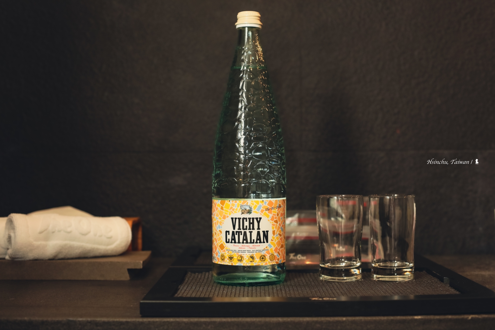 關於南園,不會被遺忘的是一個人的泡澡時光。聽完蔡琴的金嗓子後回到房間,管家已在浴室準備好一壺「舒眠艾草茶湯」,等浴缸熱水放得差不多了再自己倒進即可。我住的這間頂級客房,在私人庭院還有個沐浴區,浴缸的熱水一開,我便抓了洗沐用品來到戶外,僅靠著房間滲出微亮的暖黃,完成這場暢快的露天沖澡。淋浴後的地面積水會映照著天上月光,據說這也是這房間名字「映月」的由來。這間客房還多了個特別設備,是黑膠唱盤,很先進的可透過藍芽連結喇叭,於是我把燈關暗、一邊聽著音樂一邊泡澡,可真享受。泡澡完記得補充水分,這回他們還很貼心在浴室準備了一瓶西班牙進口的鹽味氣泡水,仔細看瓶身,靈感正是來自西班牙聖家堂,在還不容易飛出國的此刻,能在旅途上想起旅遊回憶,是種幸福。