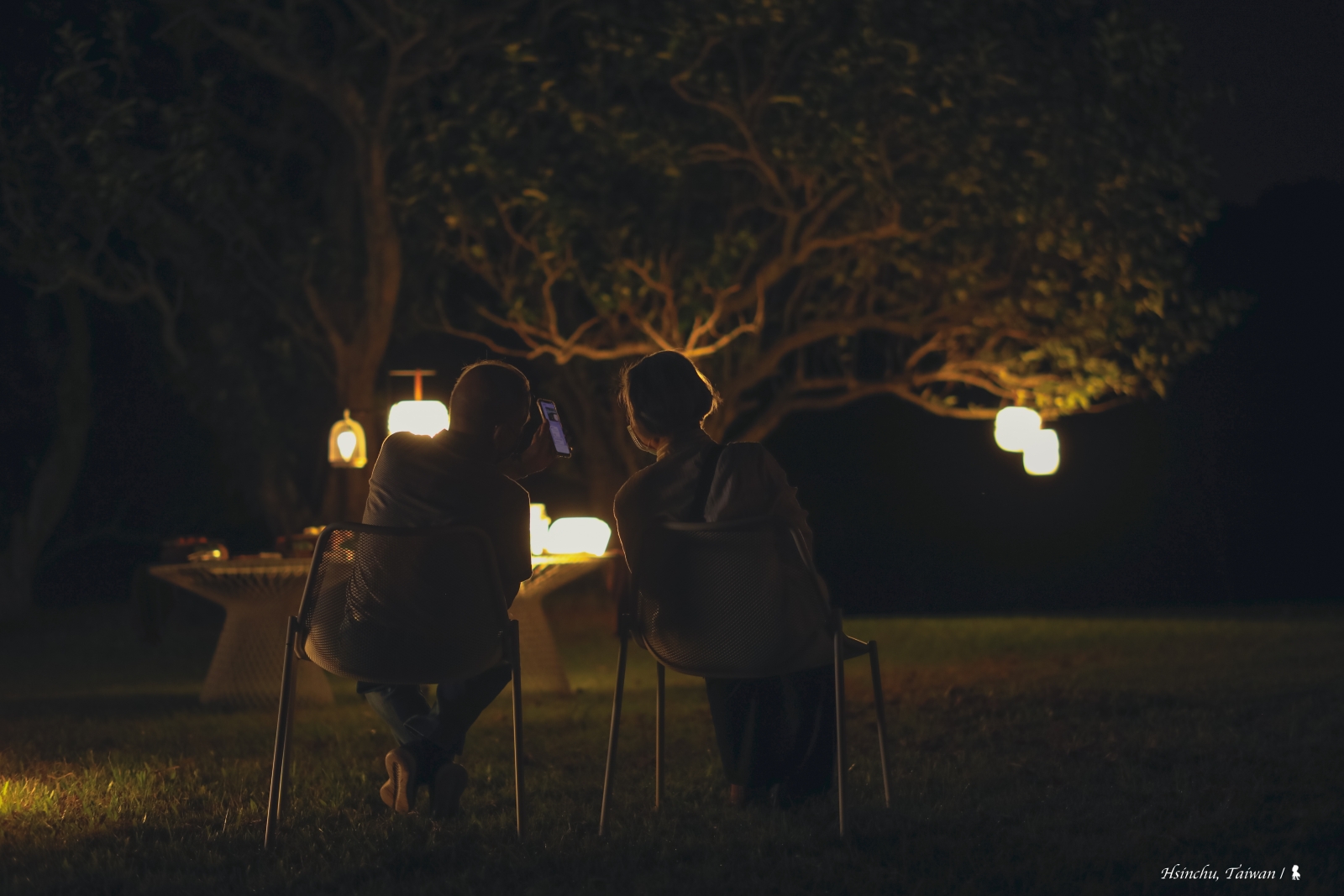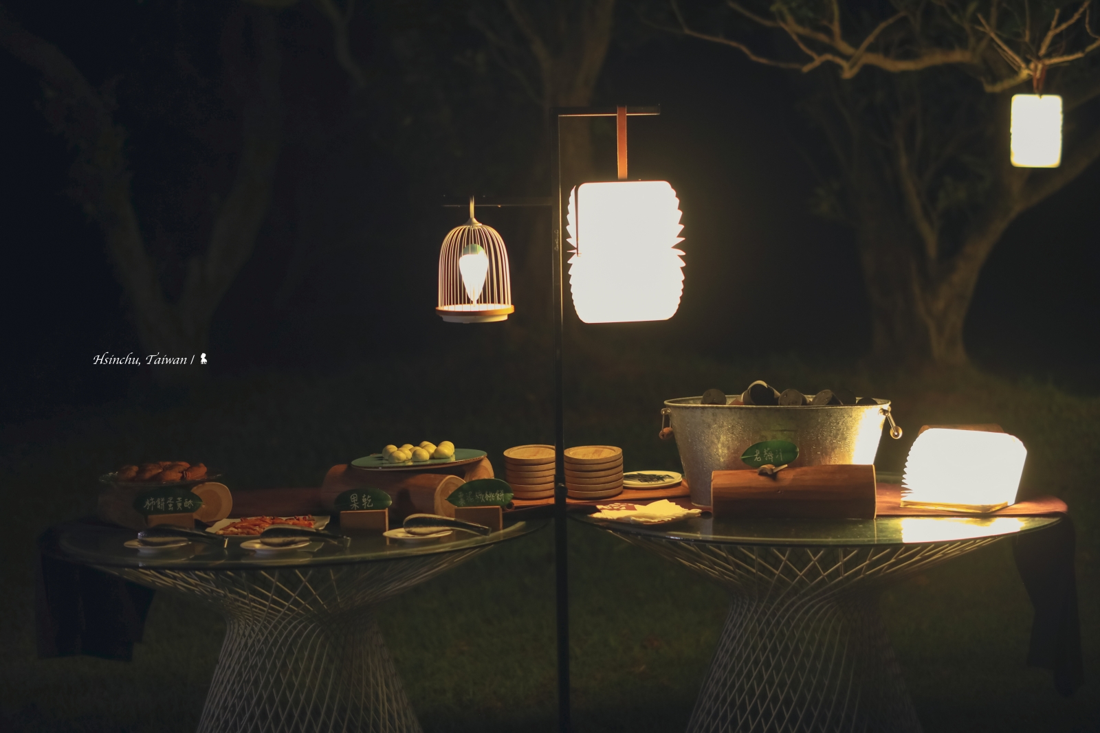 從南樓飽食後,我們提著書燈漫步,來到隈研吾作品「風檐」。幸運的遇上中秋檔期「風檐月賞」活動,管家們老早就在一旁樹下備好長桌小點,儘管晚餐吃好飽,我還是忍不住拿了瓶冰涼可助消化的老梅汁,搭配一款管家使用筆柿所自製的應景點心:柿餅蛋黃酥,好吃也好特別。唧唧蟲鳴,樹葉婆娑,身旁一對銀髮夫婦,在月光下一邊聆賞經典英文老歌,偶爾分享手機畫面簡單交談,這畫面看似平凡卻再珍貴不過,那一刻,我大概懂南園這些年在努力的,是想帶給大家什麼了…