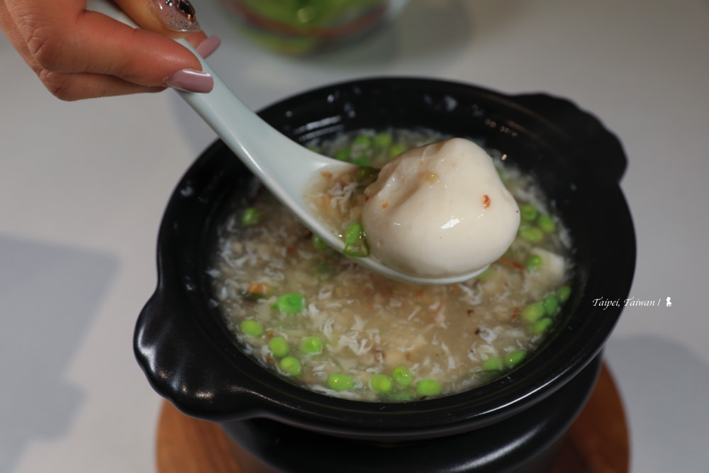 ⇑ 宋嫂魚圓羹,以細嫩魚丁為湯底,搭配軟嫩如豆腐腦的杭州魚圓,口感很好