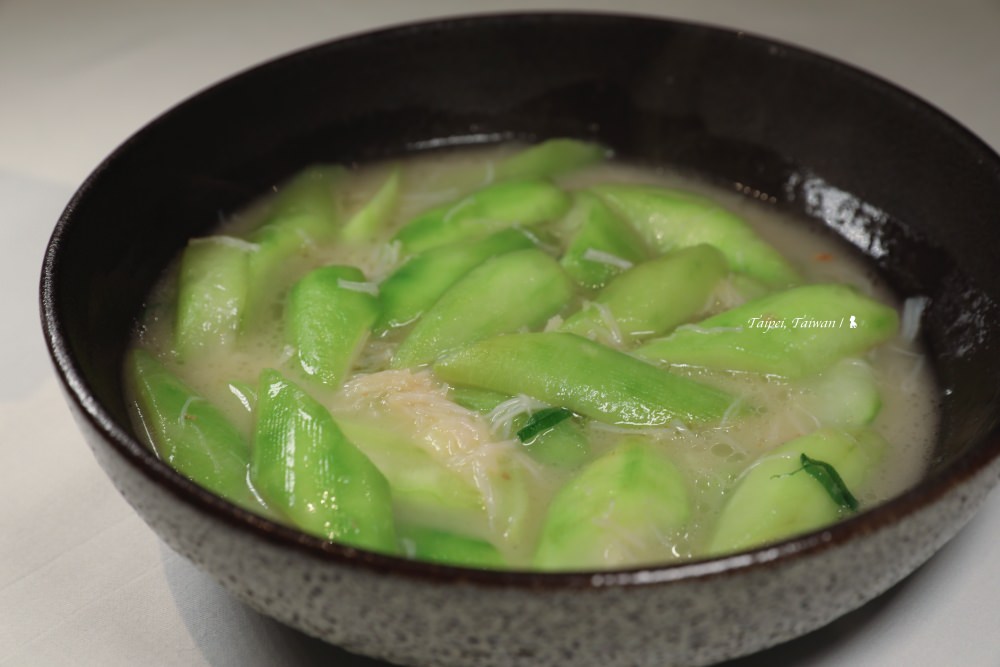 ⇑ 瑤柱絲瓜,以鮮美高湯煨煮絲瓜與干貝,鮮香不膩