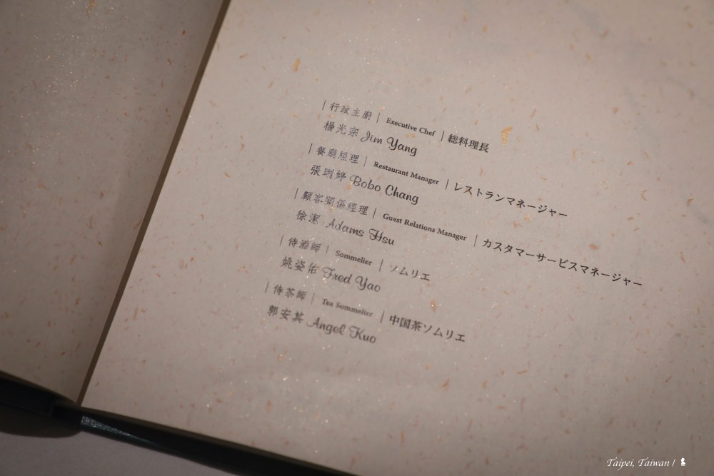 ⇑ 侍茶師也與行政主廚等人被放在菜譜同一頁介紹,顯見重視程度
