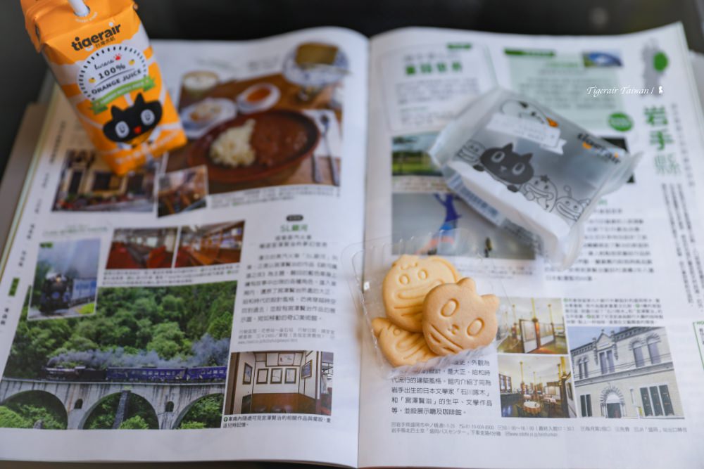 我的首趟日本東北行,是搭台灣虎航從桃園一航廈直飛岩手縣的花卷機場,飛行時間三小時,去程上午 11:50 起飛,回程是晚上 8:55 降落,午去晚回的這航線時間漂亮,早上睡飽再出門即可。跟我上次搭台灣虎航飛宿霧一樣,都是坐腳部空間很寬敞的逃生口座位,這位置需加價不過值得。飛行正值午餐時段,直接在機上吃付費餐,「台灣味」是台灣虎航機上餐點的特色,據說第一名是古早味排骨飯,不過我想嚐鮮、選上季的新推口味:香滷筍乾腿庫飯,口味蠻不錯,滷的入味,飯菜台味十足,能滿足絕大多數的台灣胃。點餐還會附瓶小飲料與台灣虎航造型餅乾,餅乾當作飯後點心跟機上免費提供的咖啡茶一起食用不錯。
