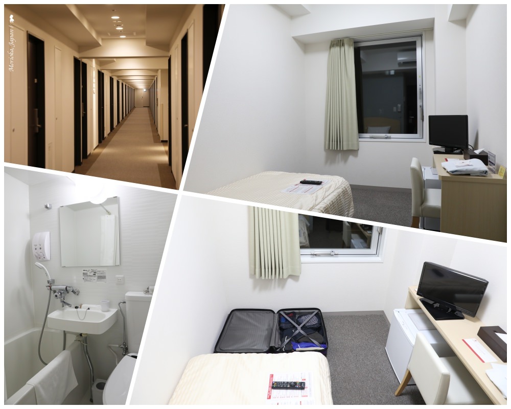 盛岡車站後站旁的 UNIZO Inn Express,交通十分便利,從旅館走到車站約 5 分鐘。不意外、房間不大但行李箱能攤開就很讓人感動。有浴缸,房間蠻新又乾淨,一晚只要台幣約 1100元,這樣的價格實在沒得挑惕!