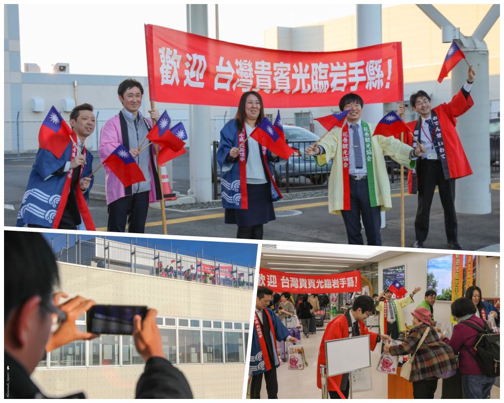 從來沒有過,熱情的接機儀式是從走出飛機那一刻就開始。降落花卷機場,連我在內的台灣虎航乘客走在空橋上,目光被外頭航廈頂樓的大動作吸引,蔚藍晴空下幾面紅藍色塊的旗子揮舞著,大家開始窸窸窣窣、然後驚呼「哇~他們在歡迎我們耶!」一行人揮舞著青天白日滿地紅的國旗,我把剛拍的照片在相機液晶螢幕上放大,仔細一看、拉開的紅布條上還寫著「歡迎 台灣貴賓光臨岩手縣!」,也太熱情,還沒正式展開這趟岩手之旅,心頭已一陣暖。