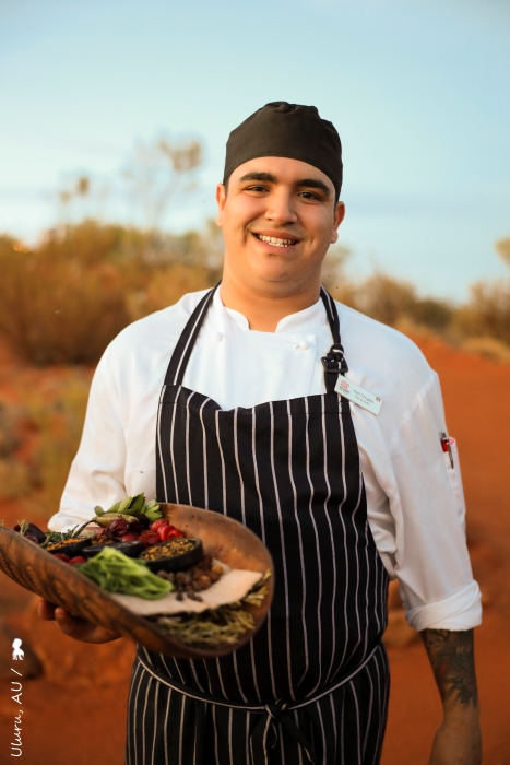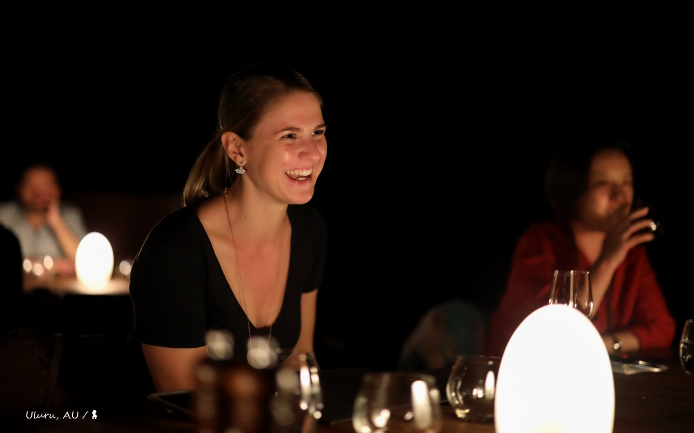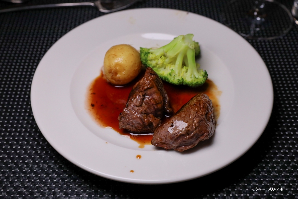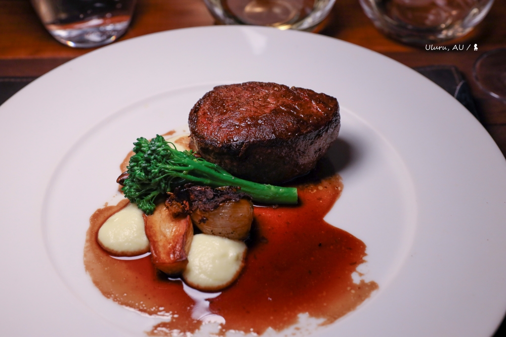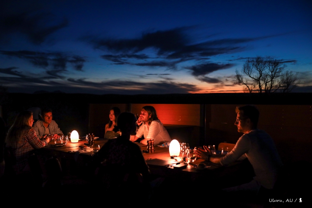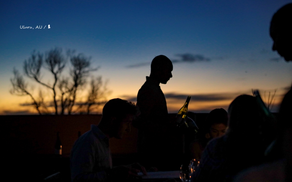 這頓將讓我終生難忘的是在烏魯魯附近一處台地露天舉行的「獨享星空晚宴」(Tali Wiru Dining Experience)。以遠方被染半邊紅的烏魯魯為背景,表演者吹響半個成年人高的傳統樂器迪吉里杜管,歡迎賓客在落日前的到來,接過香檳、服務人員會依序端上以包括綠螞蟻等當地食材創作的一口小食。待太陽下山,晚宴準備開始,完全是高級餐廳的餐桌與餐具陳設,抬頭沒有華麗的水晶吊燈,但有肉眼可見的銀河在用餐過程中緩緩移動。這銀河下極為出色的一餐,使用許多在地食材烹調,四道式從前菜到甜點,不同選擇搭配了專屬選酒,有那麼一刻,餐桌上的活絡交談會頓時沈默,只聽見不約而同的「嗯…嗯…」,大夥的味蕾都被征服,每個人臉上都漾起滿足的笑容,那是很動人的旅行時光。