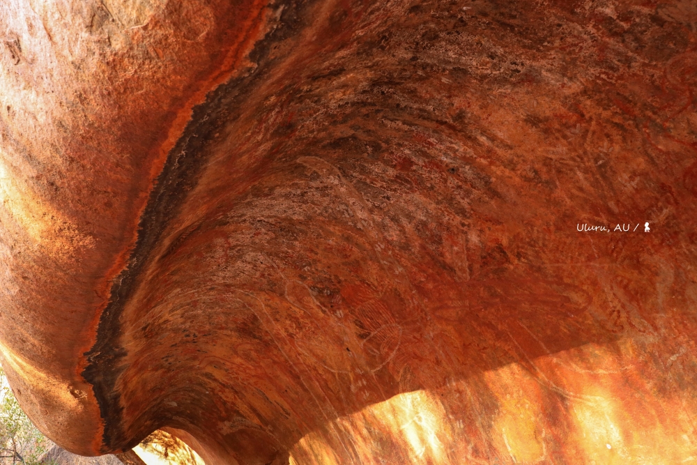 拍攝 tips:烏魯魯富含鐵因此呈現紅色,若拍攝洞穴壁畫想要呈現橘紅效果,將相機白平衡功能設定為陰影模式即可