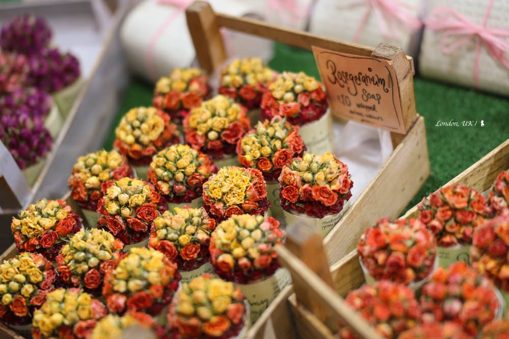 位於倫敦西區的柯芬園由 Apple Market 與 Jubilee Market 兩個市集組成,不少高級餐廳、名牌店在此進駐,不過更具風味是有多攤類似跳蚤市場,賣著歐洲老物、瓷器碗盤等可慢慢挖寶。若喜歡喝英國茶,這裡的百年茶店 Whittard 值得一逛,不同調配風味加上精美包裝,成為受歡迎的伴手選擇。說到伴手,我在這還看到一台花車,上頭放了許多可愛的迷你花盆,接近一看,上頭堆滿乾燥小玫瑰或薰衣草的竟然都是一個個手工香皂。這家 Mstrand 不只賣香皂也有乳液,若要帶些 Made in London 的紀念品,這是很具代表性的旅行味道。還沈醉在天然果香中,突然一陣悅耳的歌劇男高音從身後傳來,一位擁有好歌喉的街頭藝人開始表演,底子深厚的他沒透過麥克風就讓歌聲迴盪整個空間,音樂果然是沒有氣味的催情香,一對情侶忘情開始接吻,讓此刻的浪漫指數瞬間暴衝。